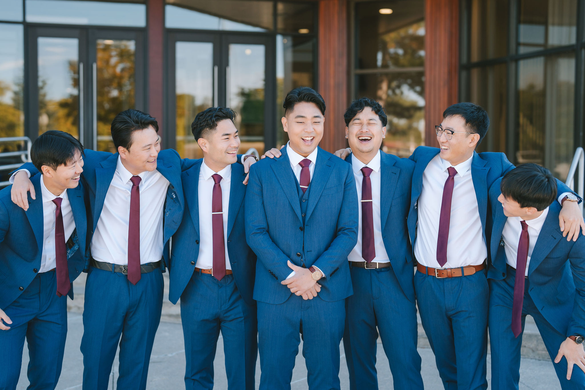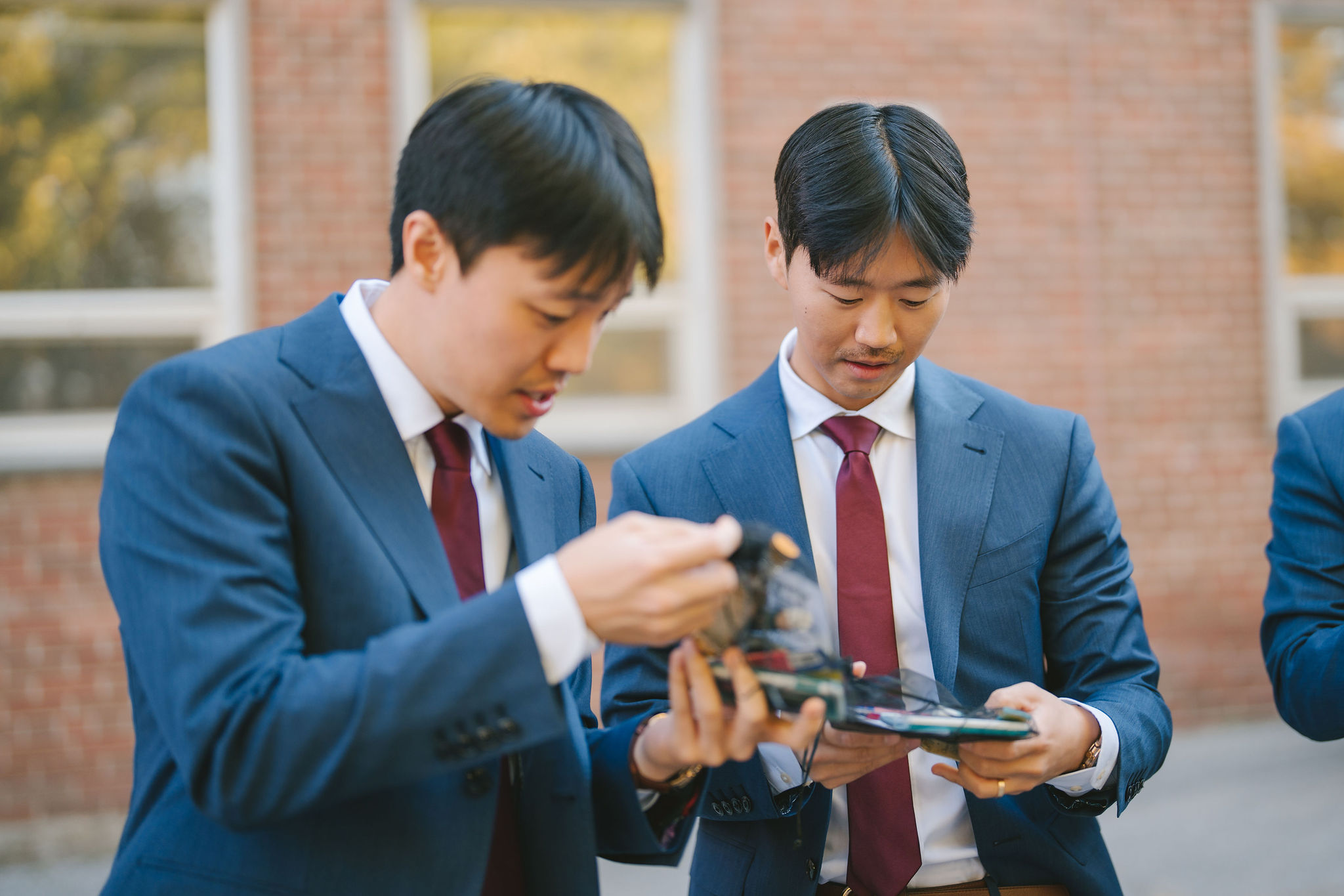 After the ceremony itself, I had the groomsmen, bridesmaids, and newlyweds transfer to York U Glendon Campus for a very quick photoshoot. But before we started, Sean and Christina took a brief moment to give their loved ones small tokens of appreciation. I snapped a few pictures of their interactions while at the parking lot.
