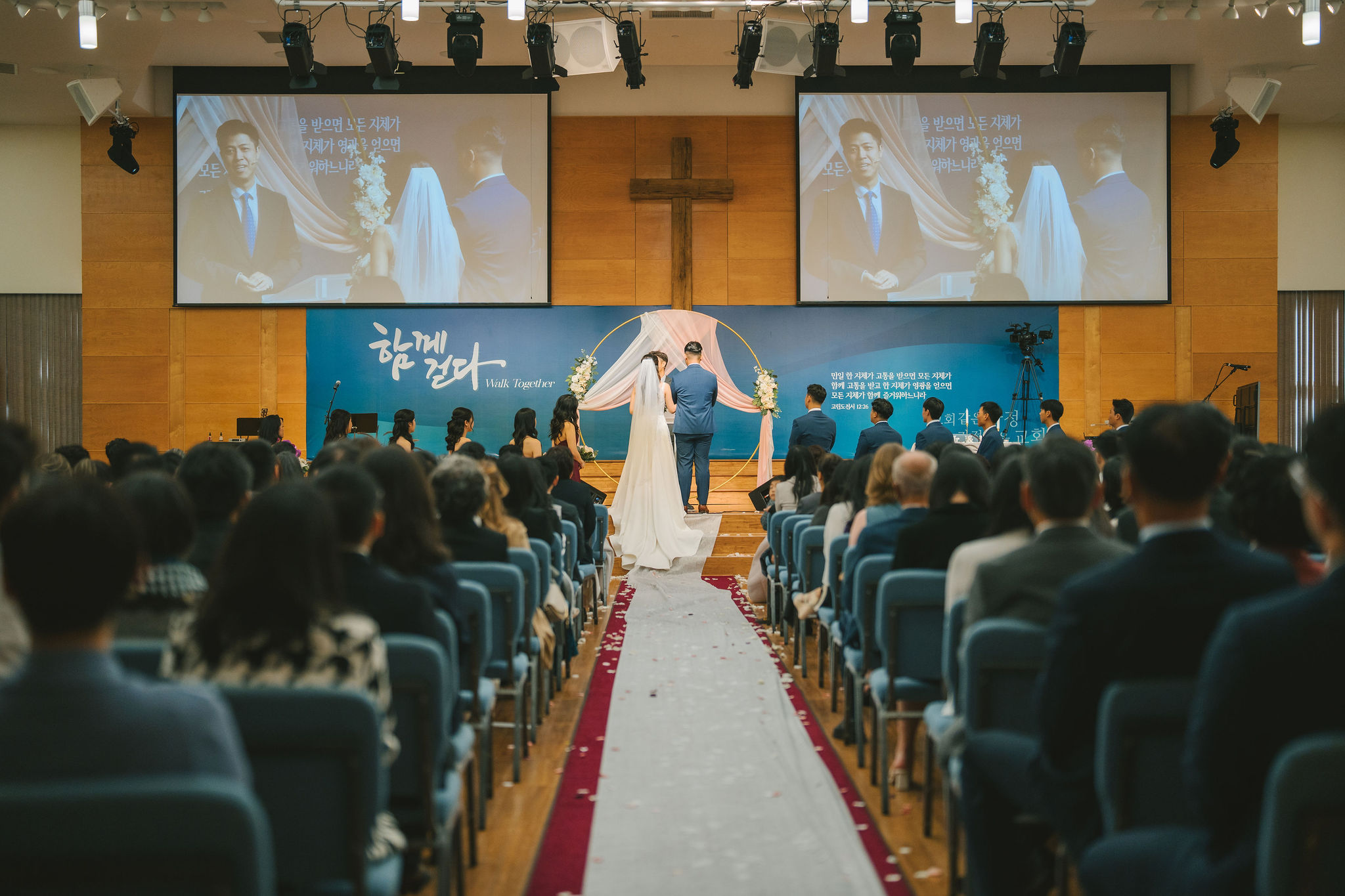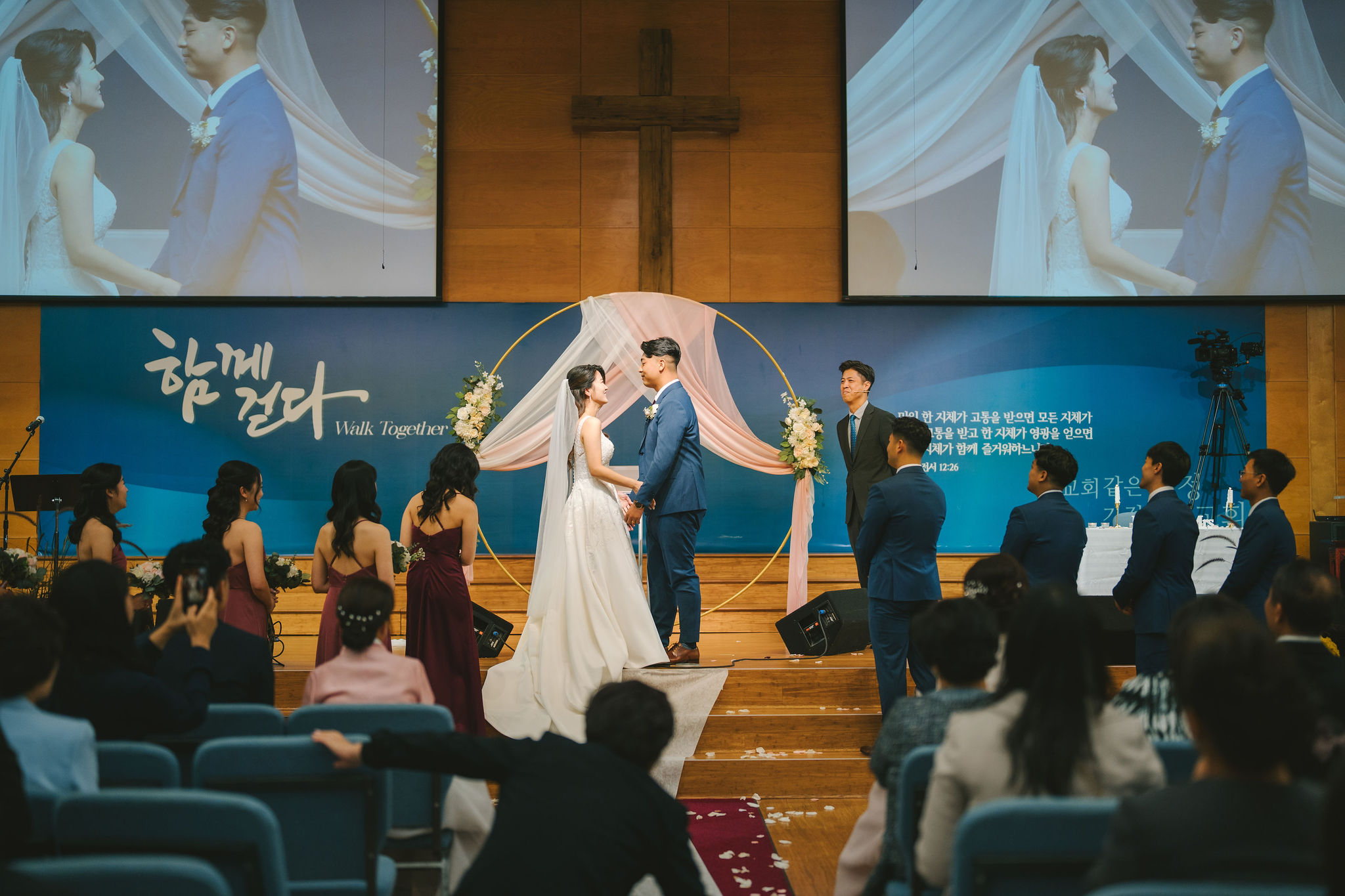 Their wedding ceremony was held at Milal Church. Seats were individually organized and at the altar, there was a simple arch with two clothes and intricate floral arrangements tied around it. Christina mentioned that they wanted to aim for something minimalistic when it came to decorations. But they did want to integrate a lot of worship and prayer into the ceremony.