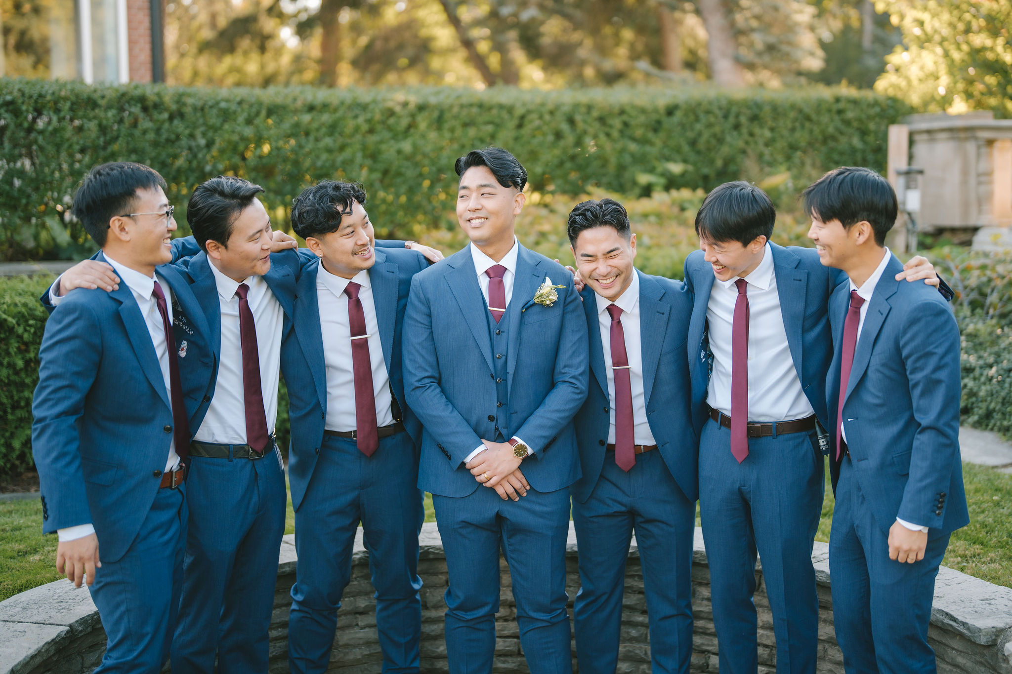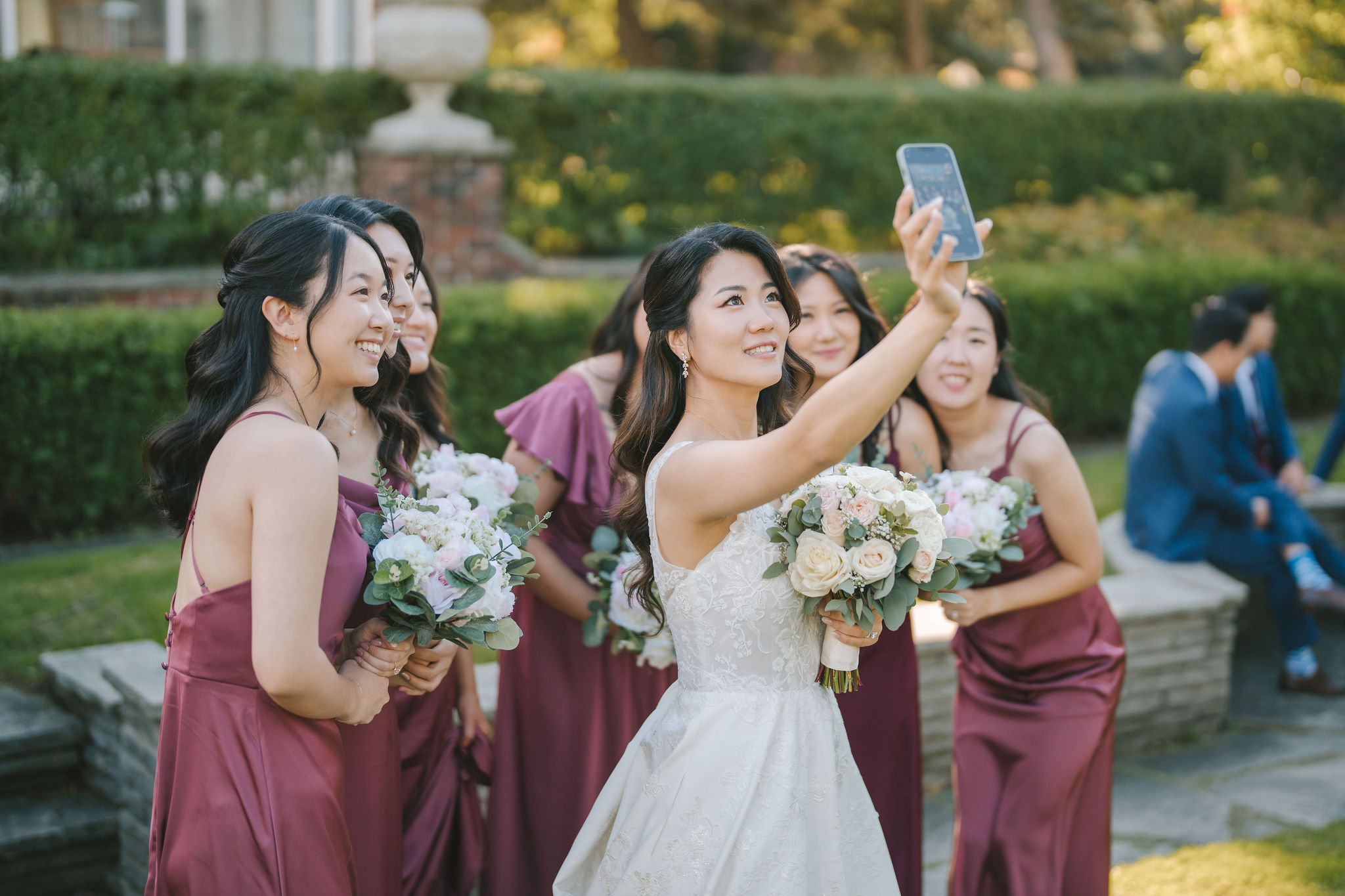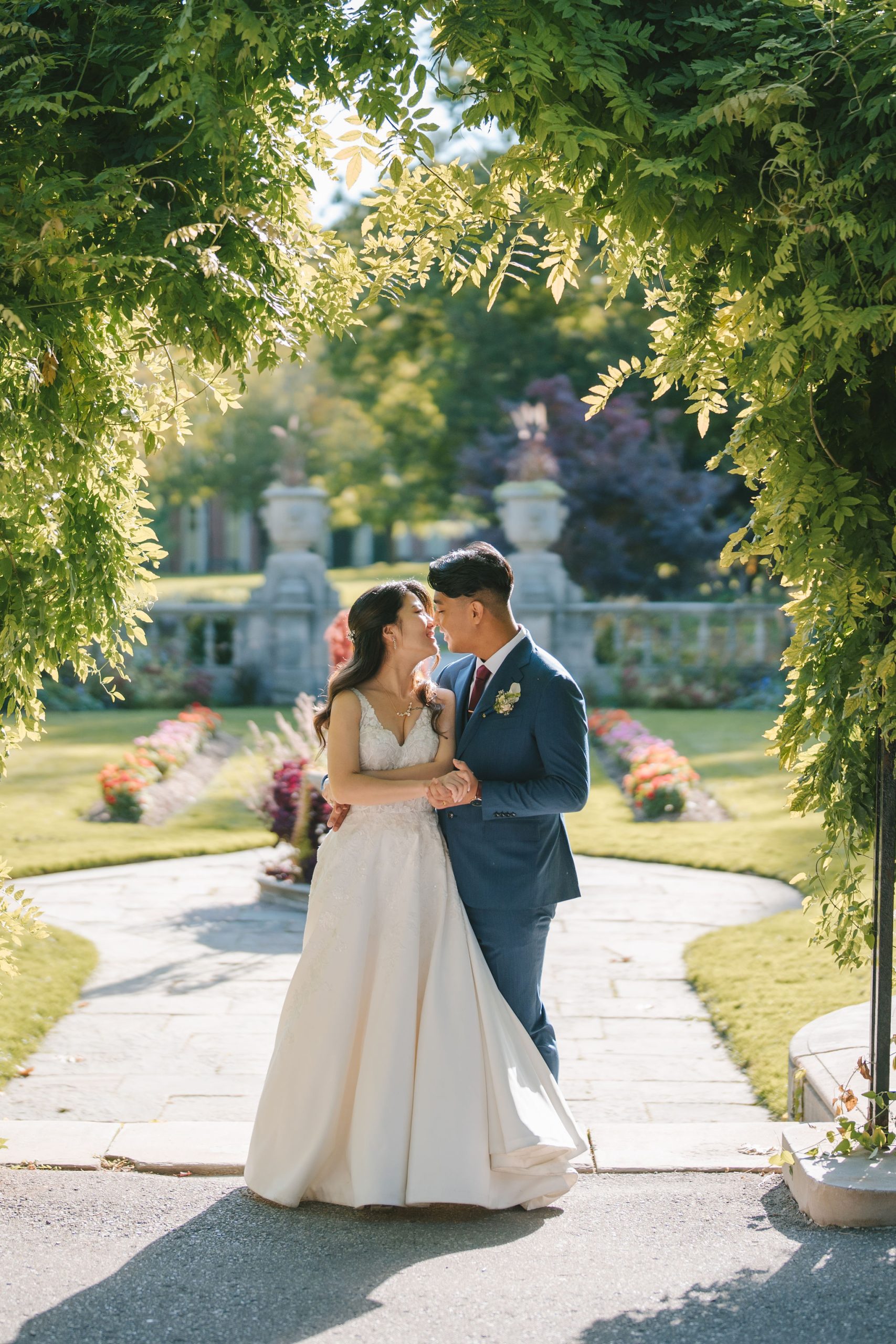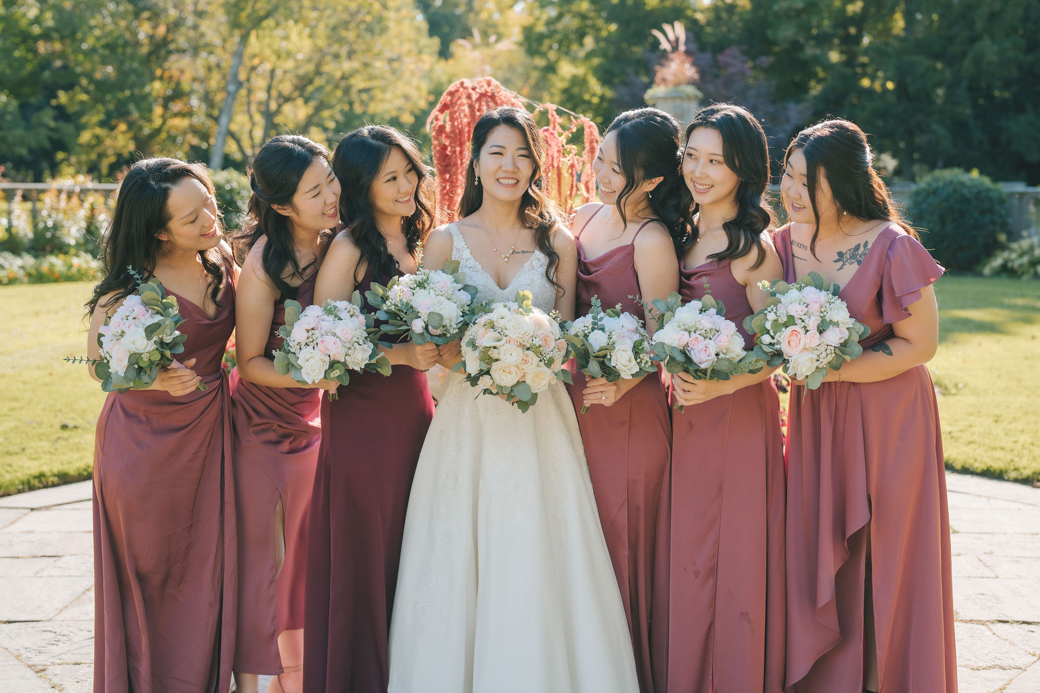 After that, I had the bridesmaids stand next to each other with Christina at the very center. The sunlight shone down on them from behind. This gave a bright aura, somewhat like a halo around them. Then came my favorite photo of the bride and groom.