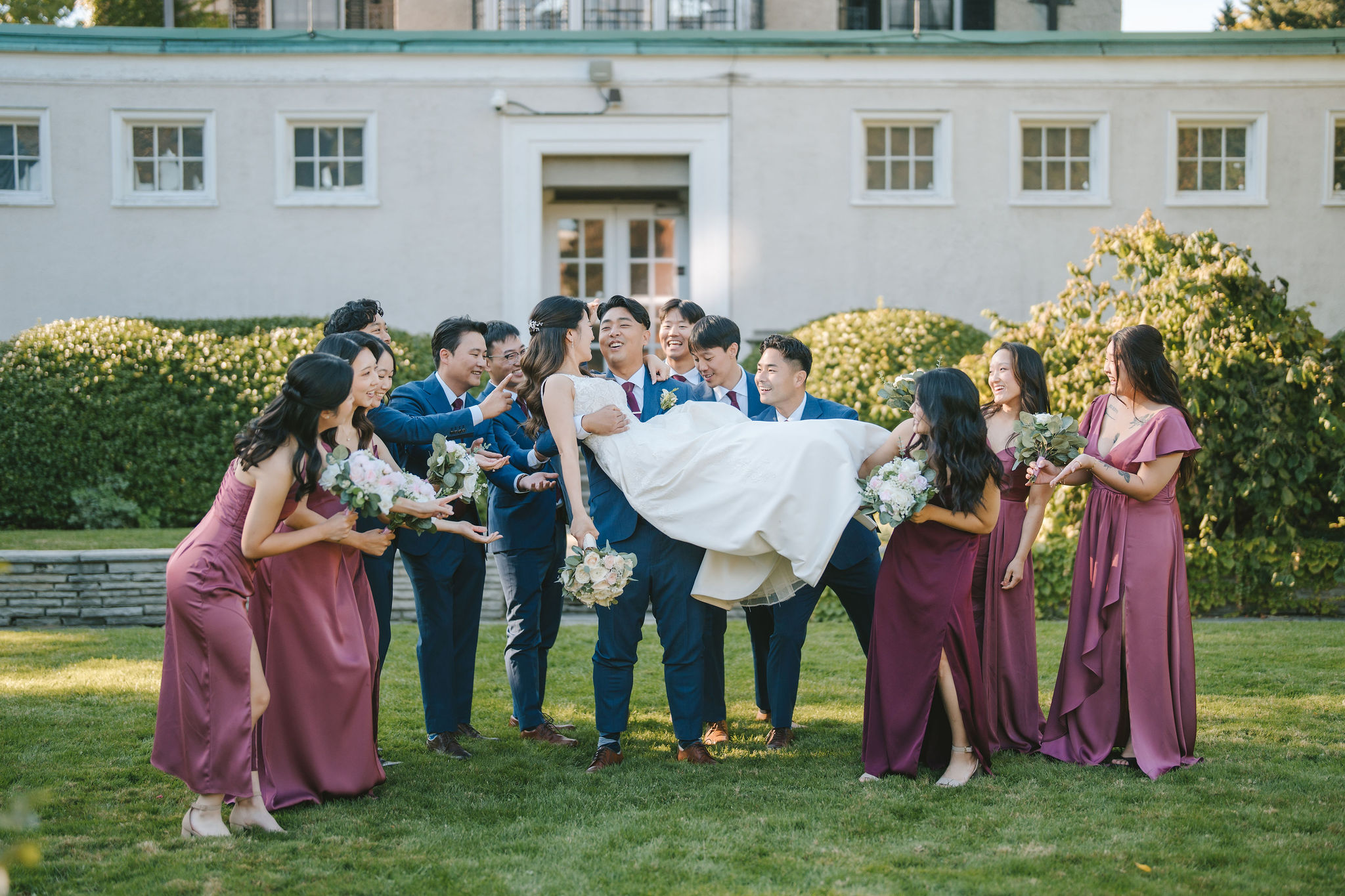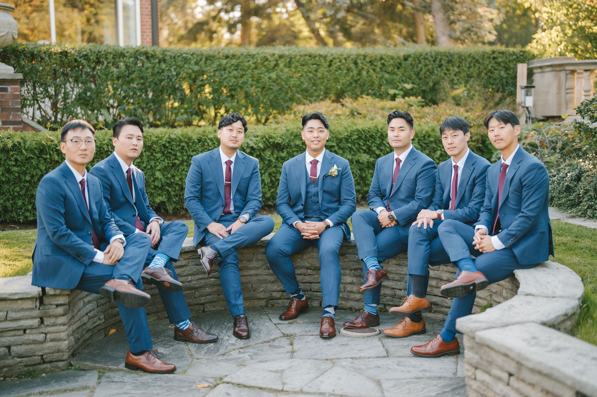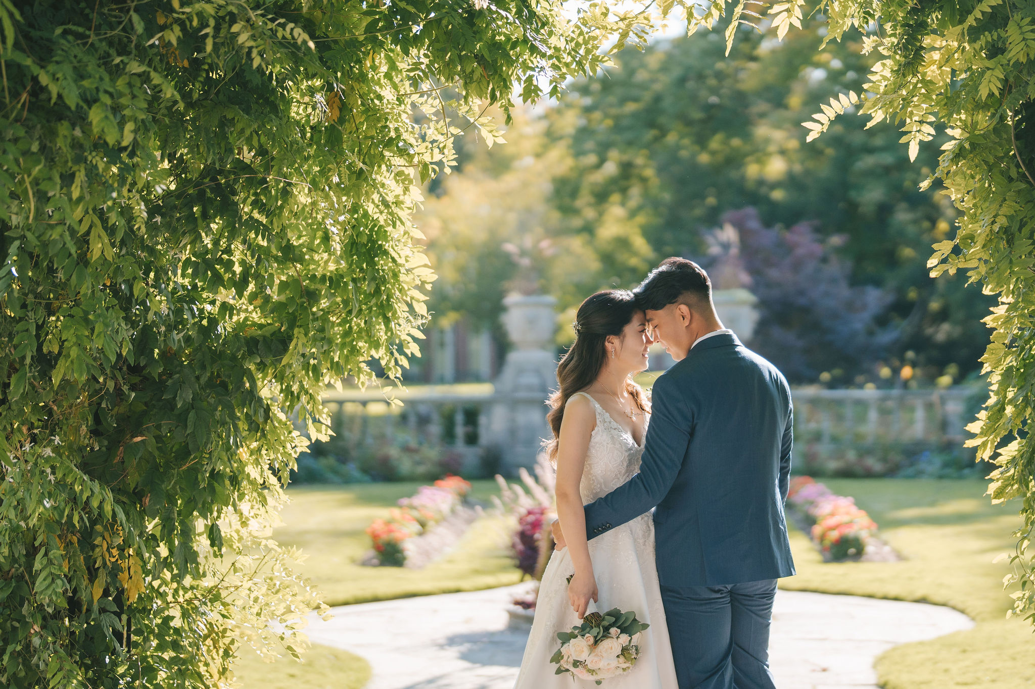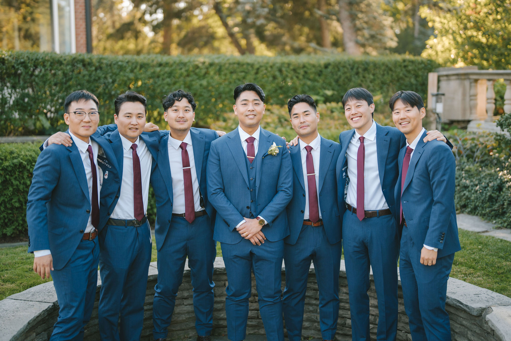 After that, I had the bridesmaids stand next to each other with Christina at the very center. The sunlight shone down on them from behind. This gave a bright aura, somewhat like a halo around them. Then came my favorite photo of the bride and groom.