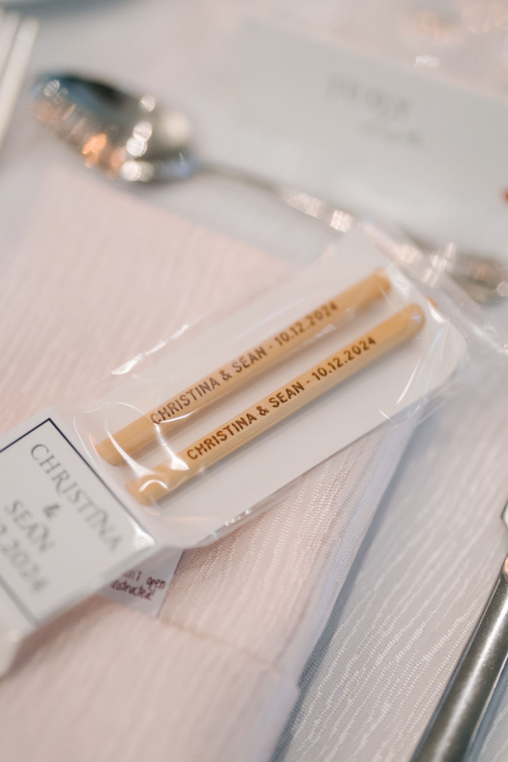 Once Sean and Christina were more than happy with the results, we decided to meet the rest of their guests at Parkview Manor. According to their form, the majority of the decorations at the reception hall were DIYed. Nothing too extravagant, but I thought having personalized wooden chopsticks for everybody to use and keep was a really cute gesture.