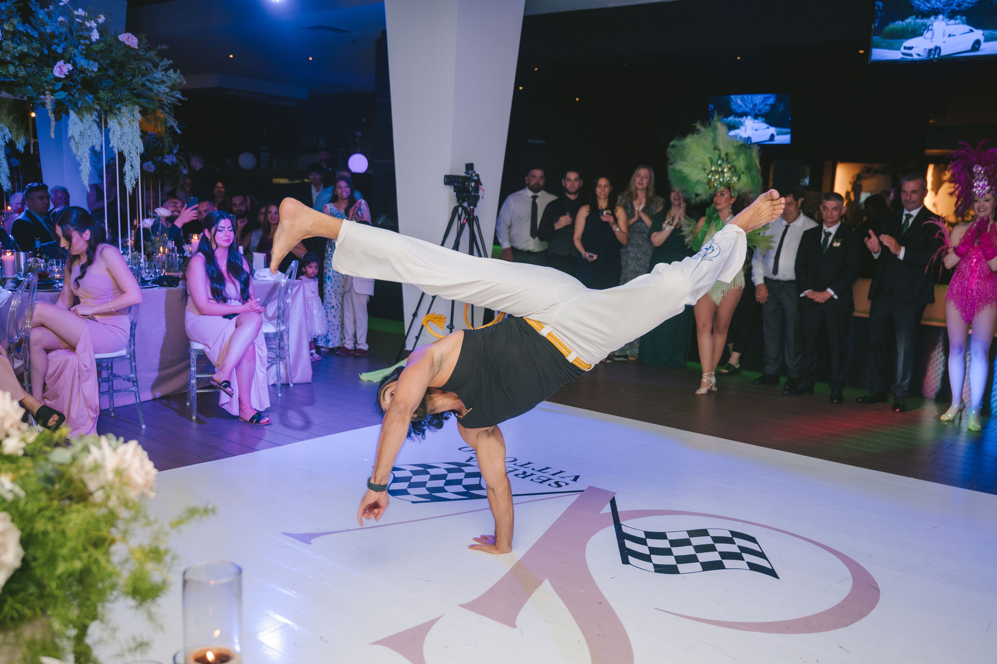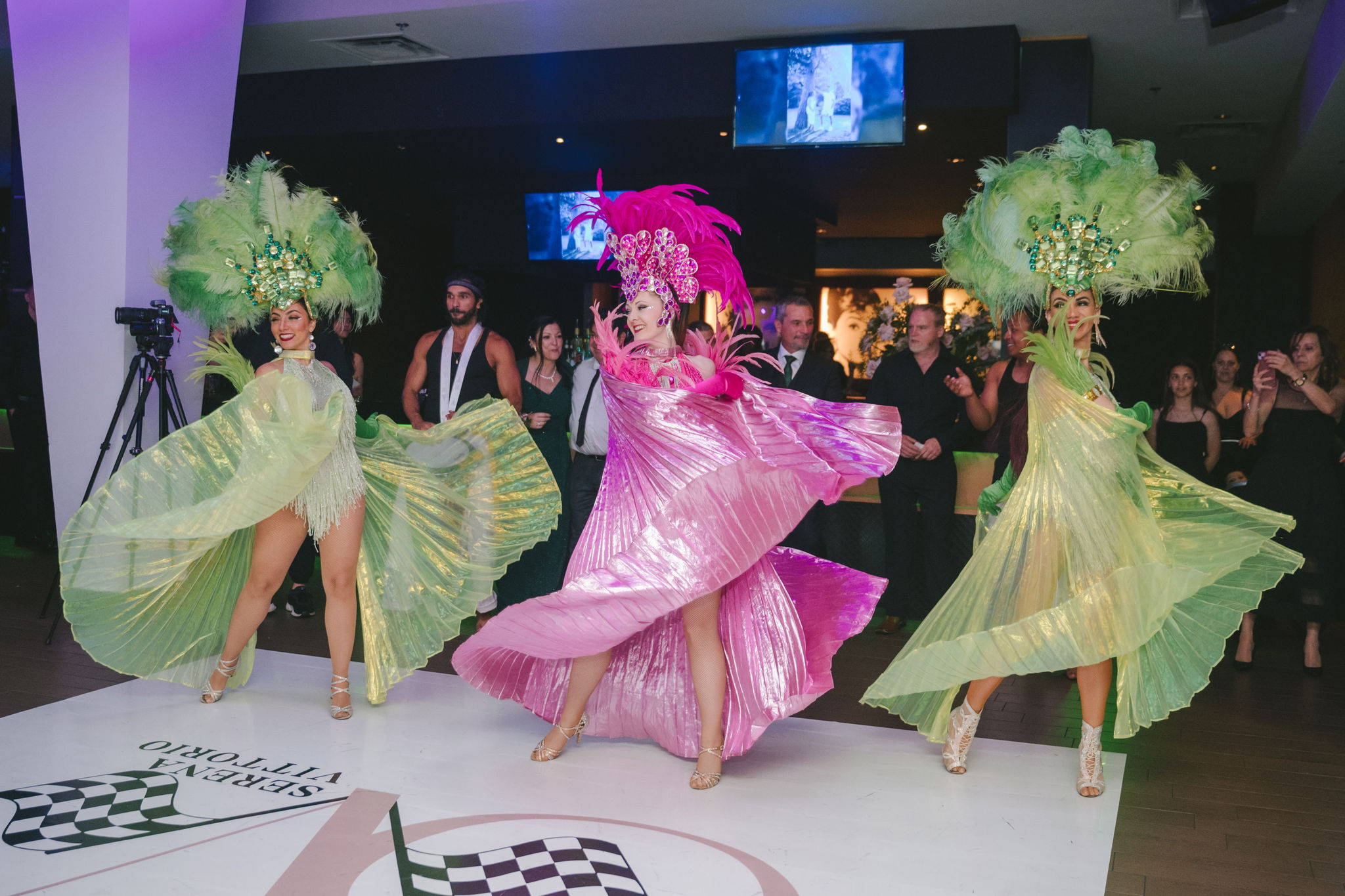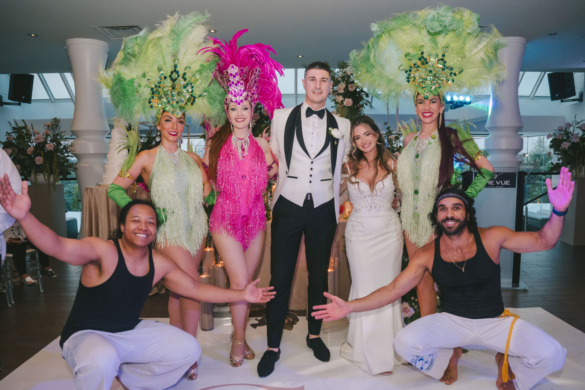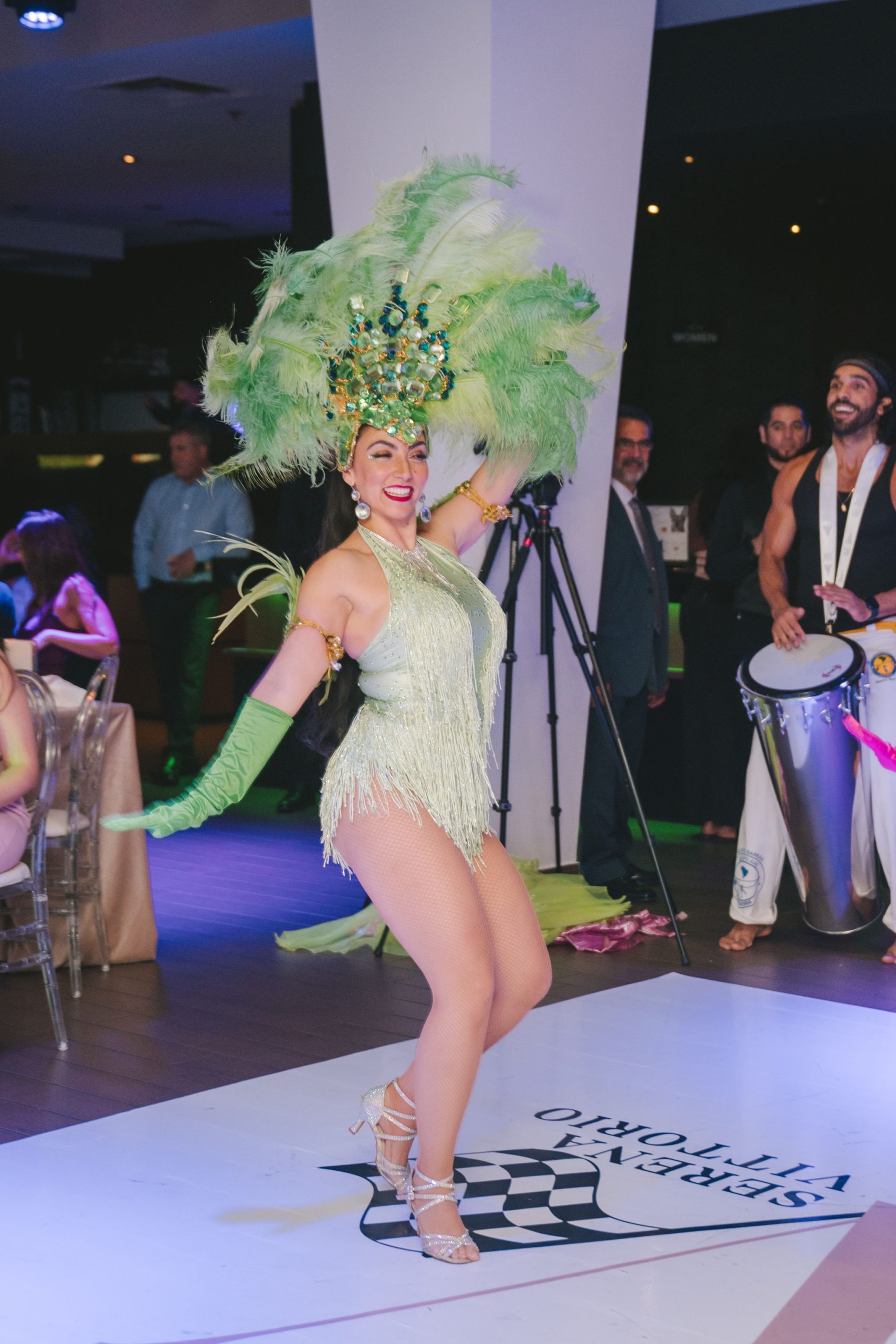 Under the grand chandeliers, guests toasted, they chattered and laughed, then danced as the samba performers arrived at the venue.