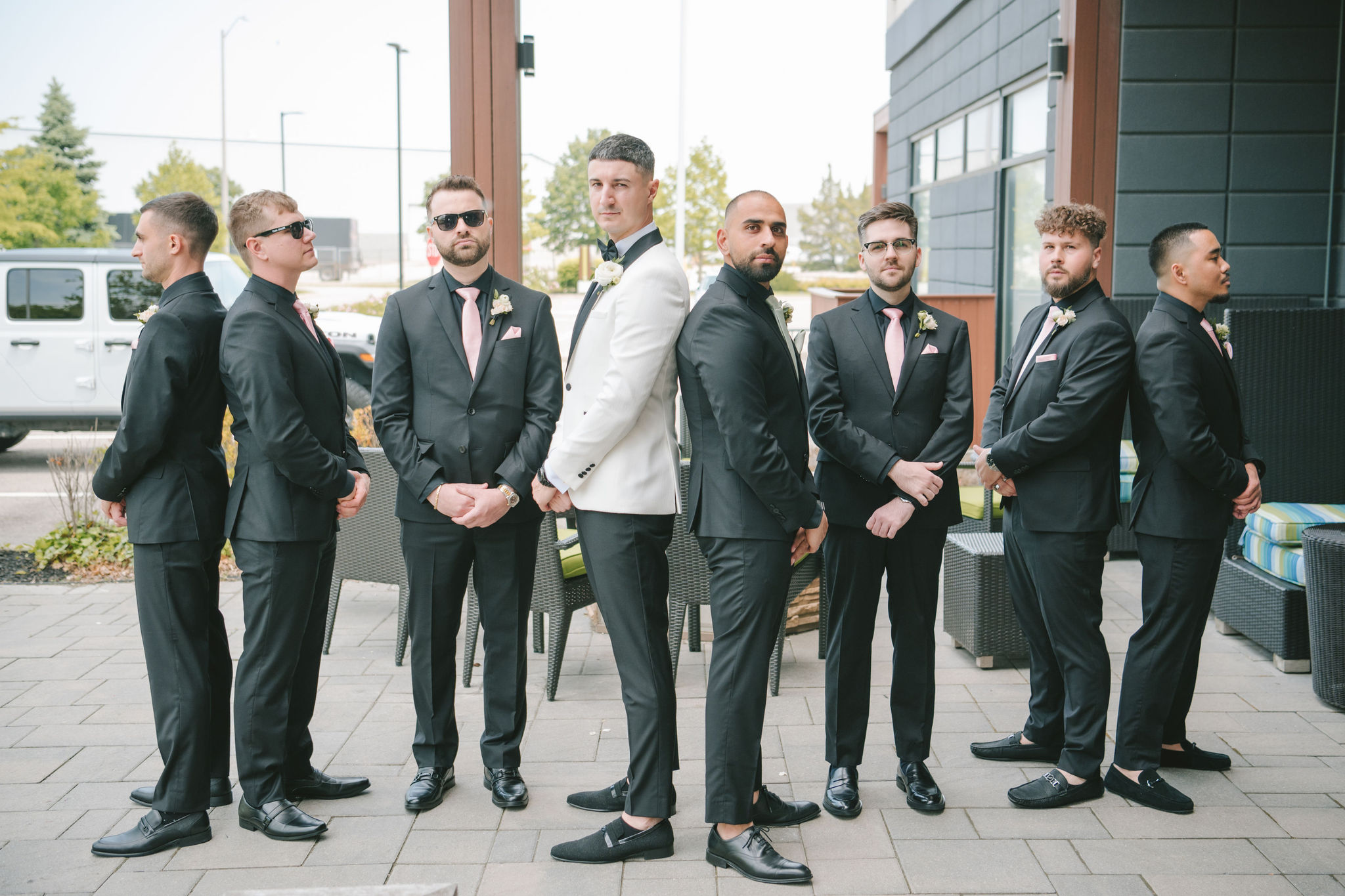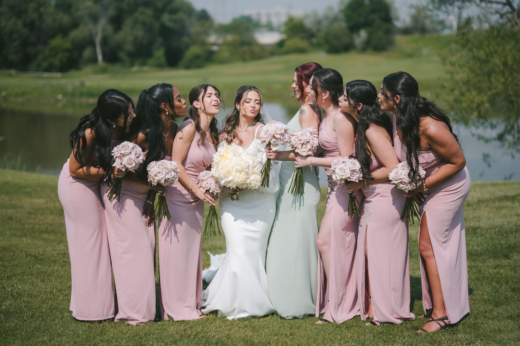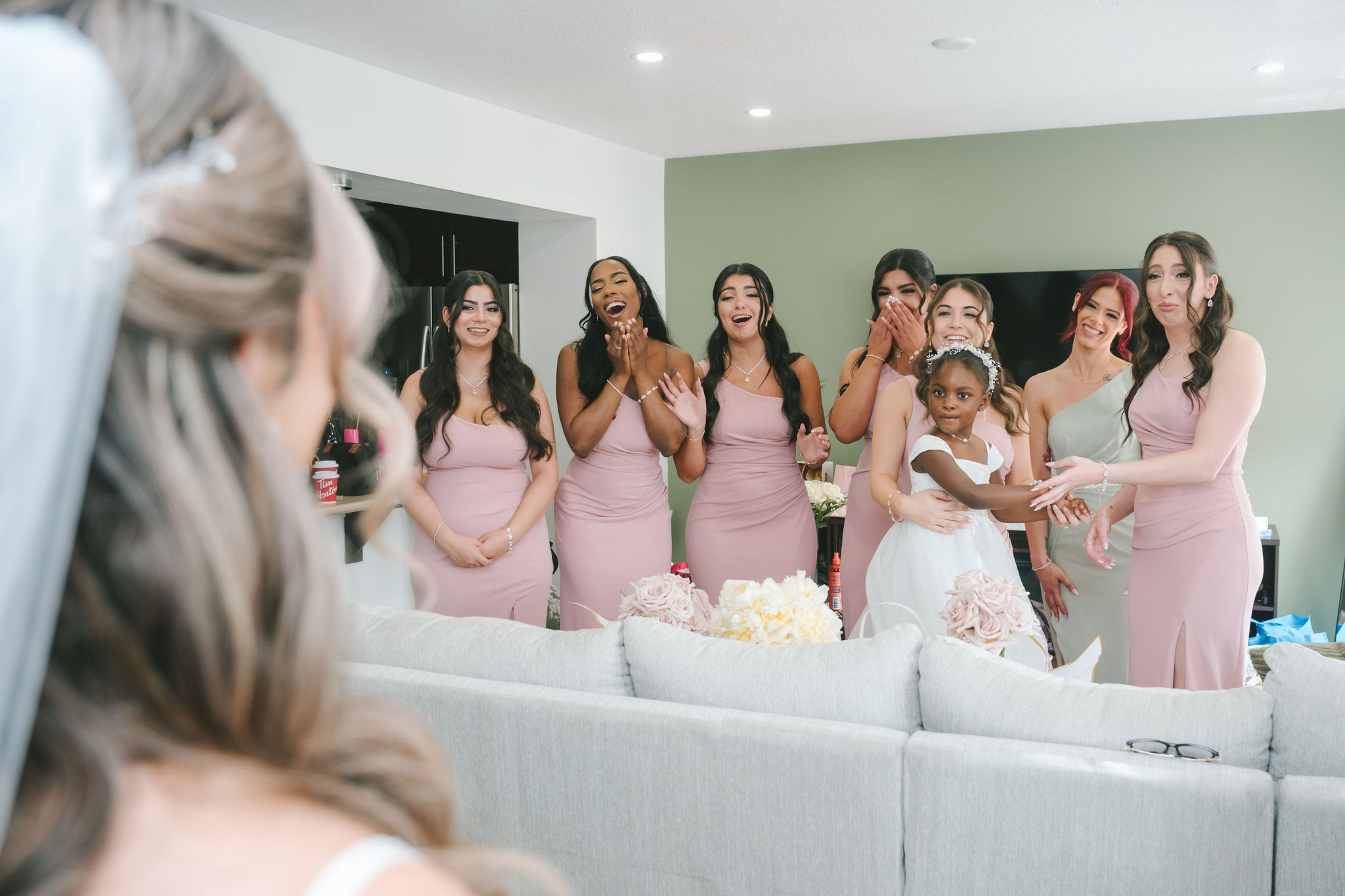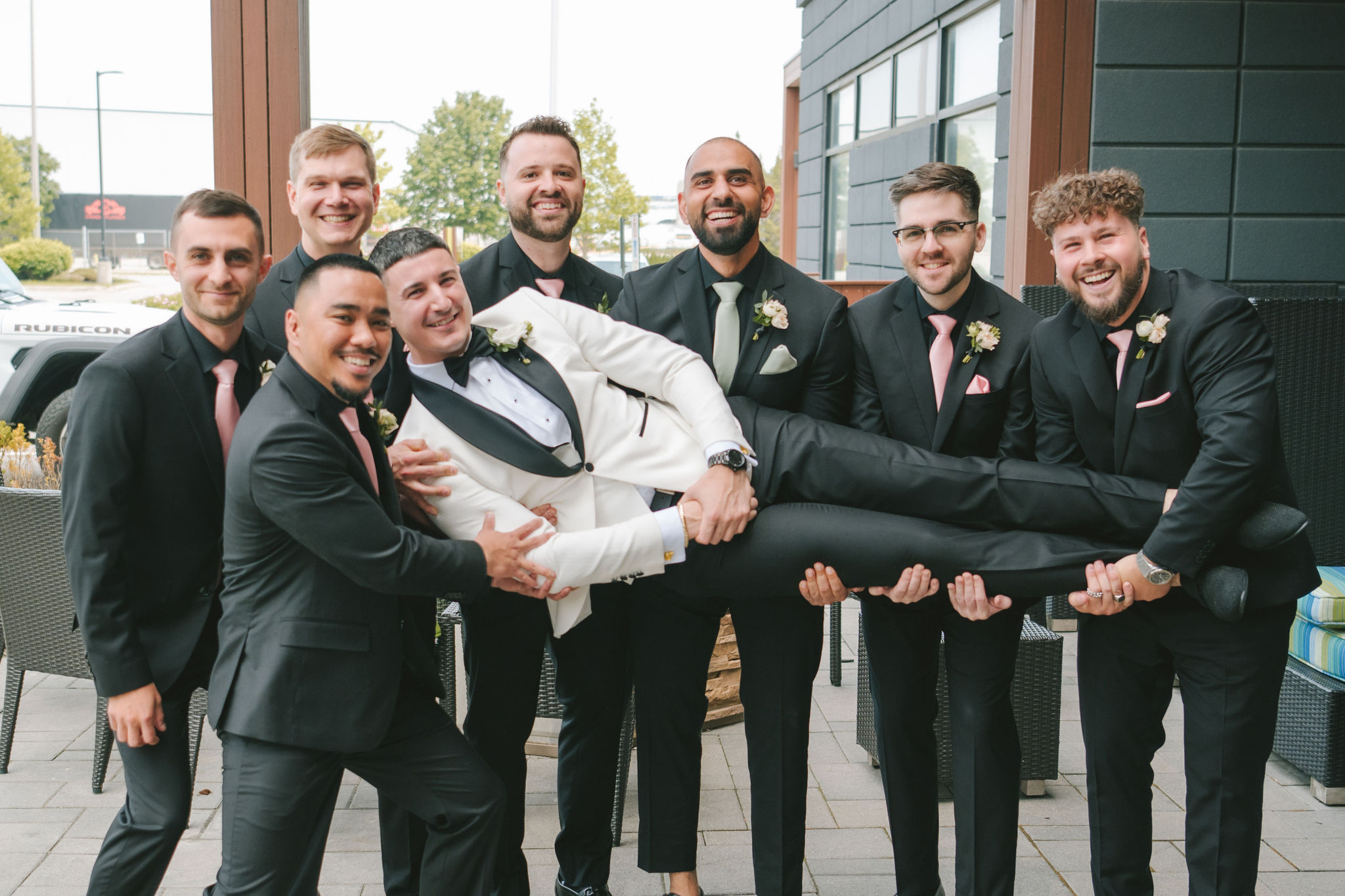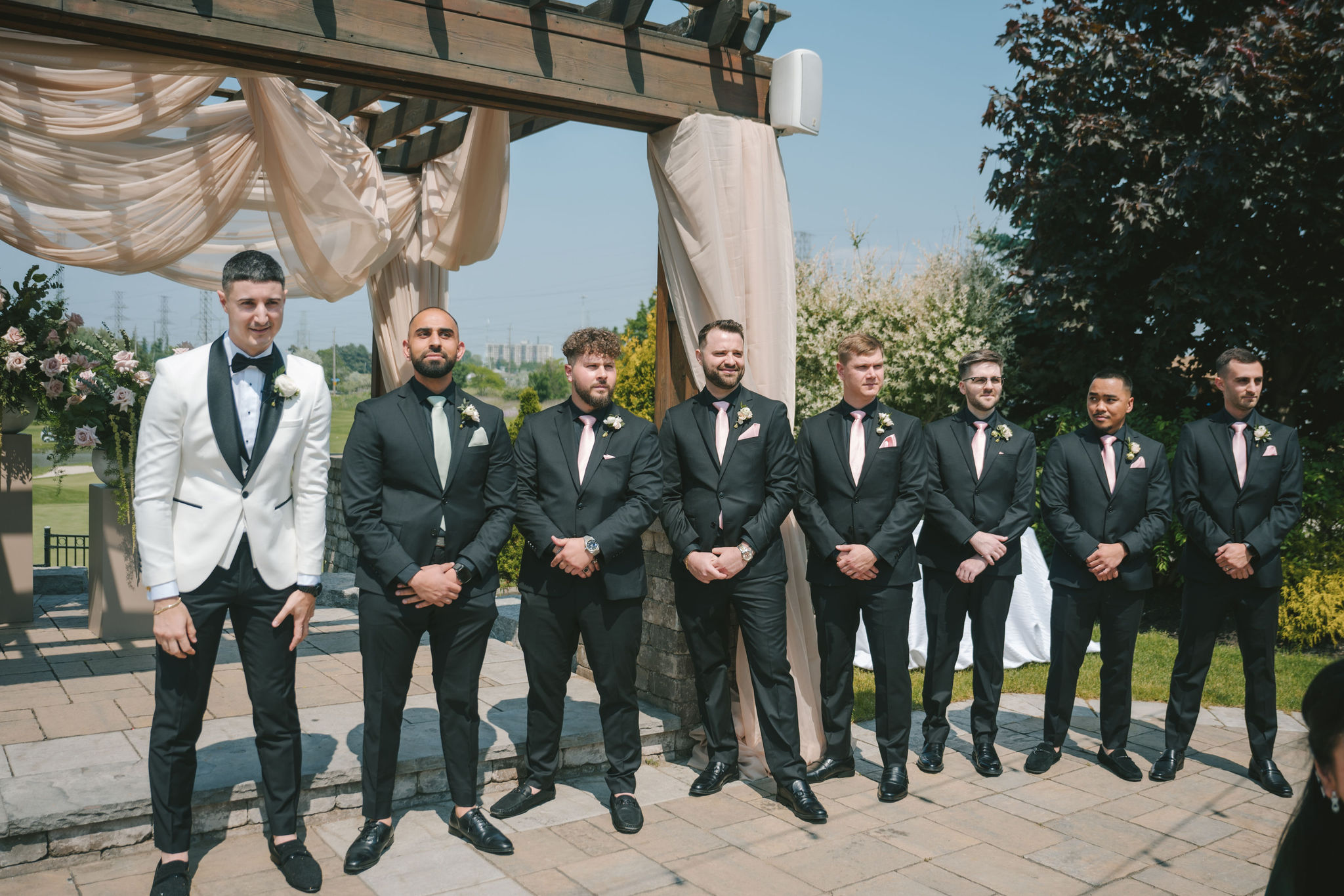 All a seamless blend of tender romance and personality. Lush greenery trailed across tables, soft pastel flowers bloomed from every centerpiece, and subtle car-themed details added a spark of fun without overpowering the elegance of the evening.