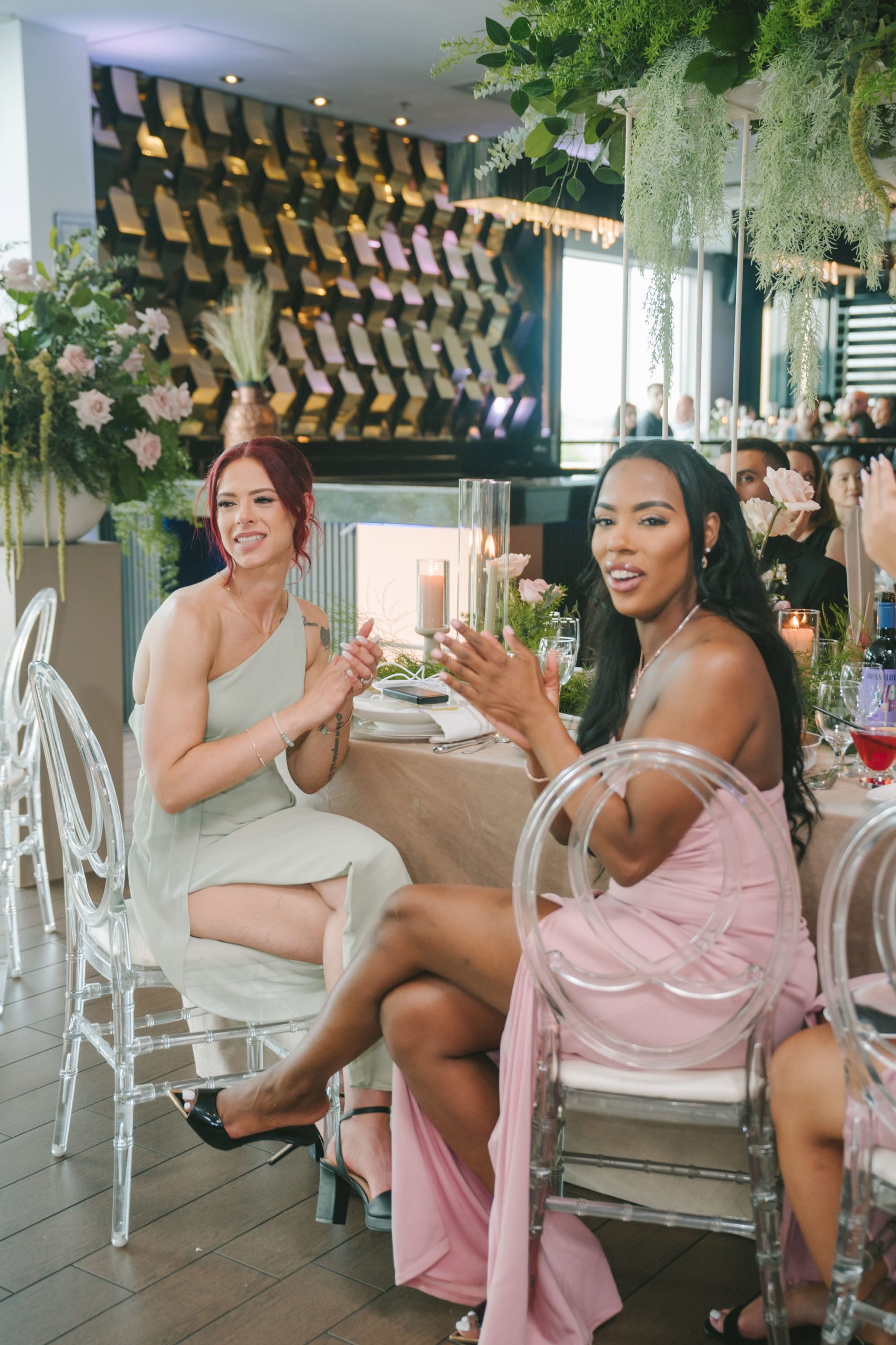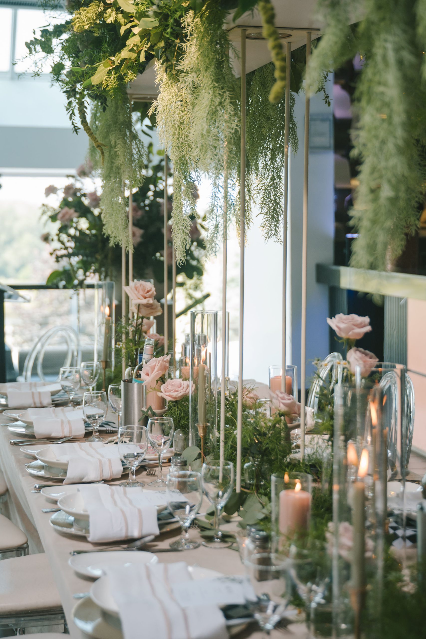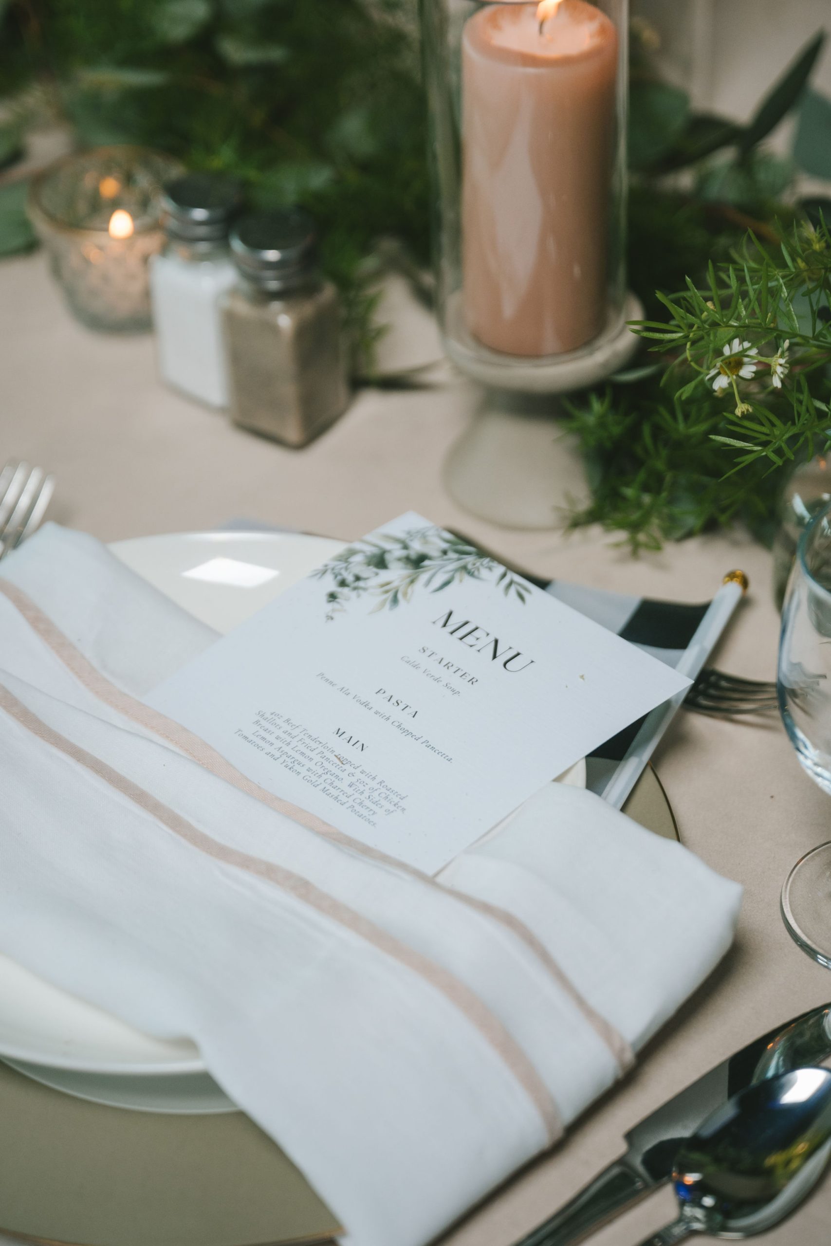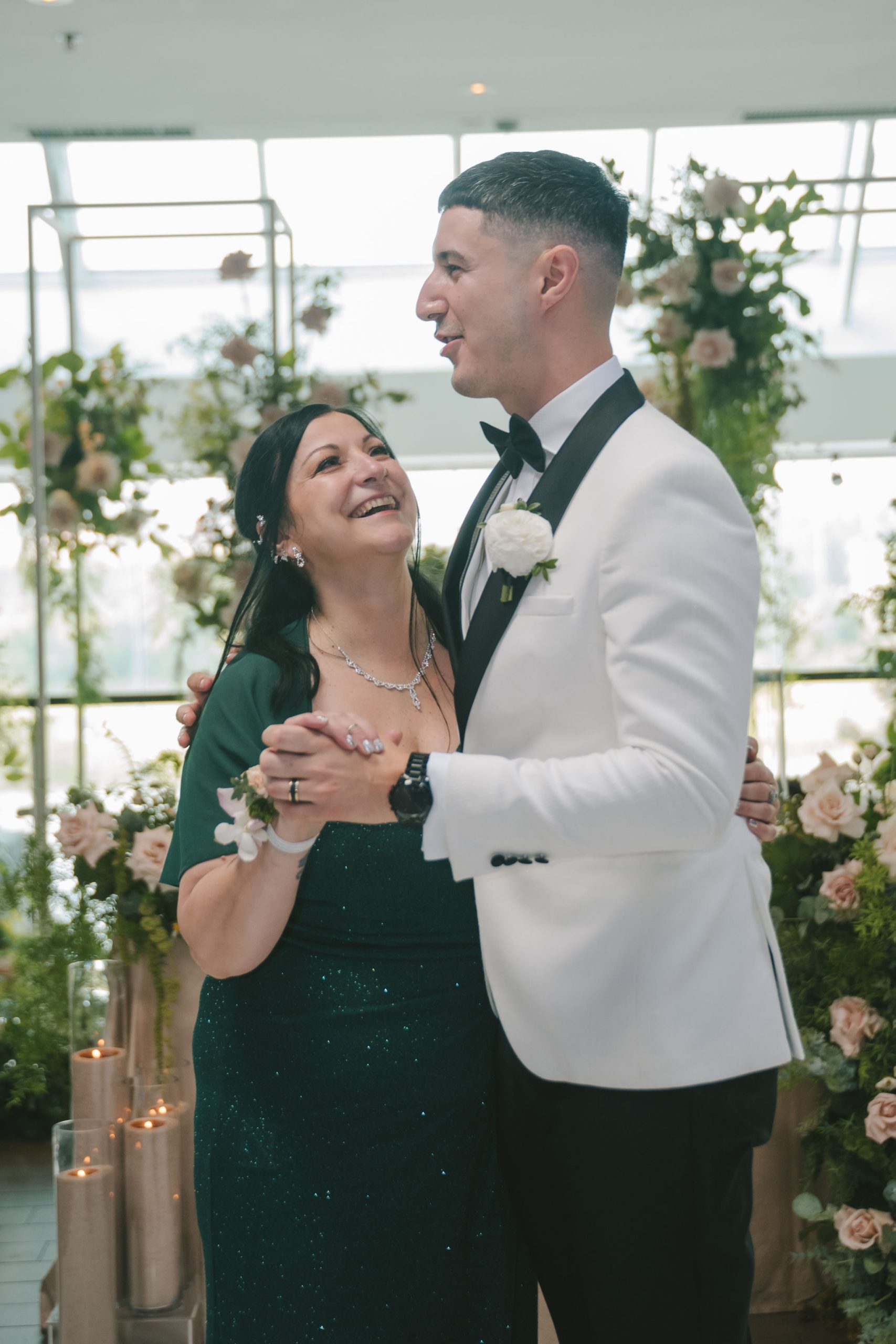 The space they had was bathed in soft light and framed with the softest hues of ballet pink and sage green, with black and white. Every detail of that day was touched with intention: greenery intertwined with blooms of peonies and dusty roses, delicate candlelight reflecting softly off every petal and smile.