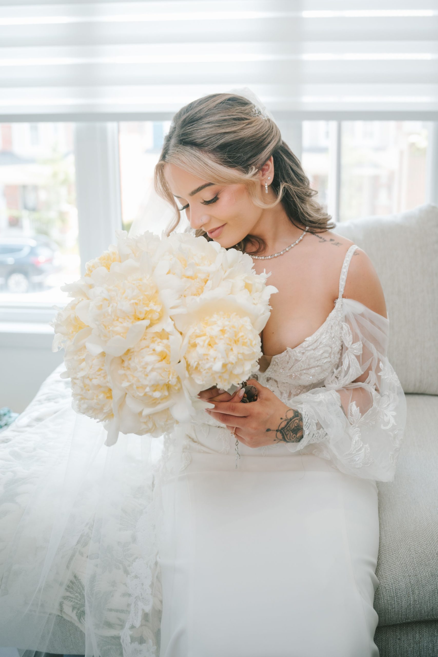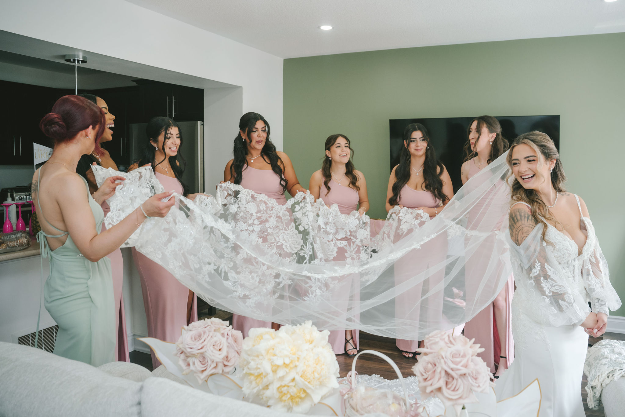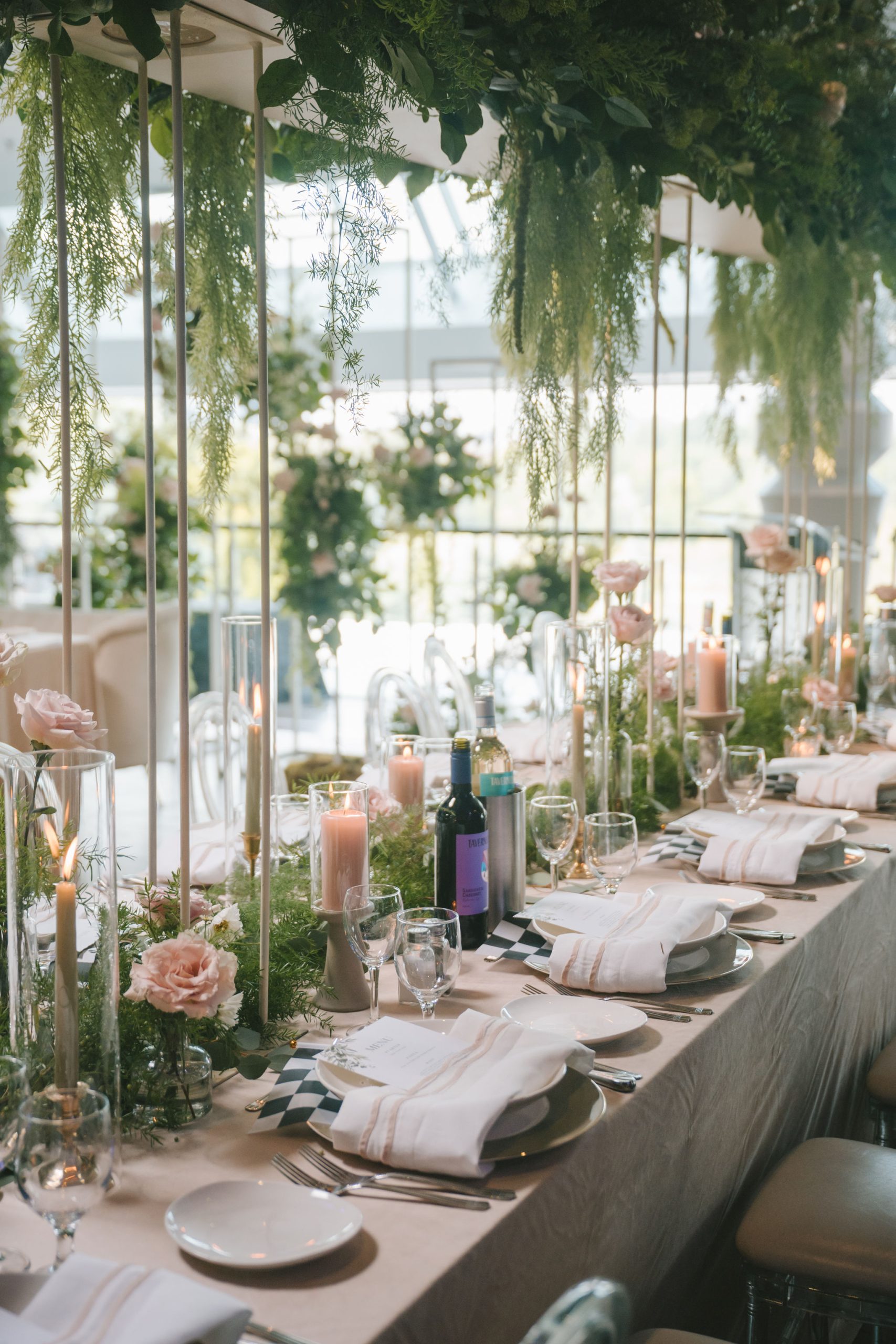 The space they had was bathed in soft light and framed with the softest hues of ballet pink and sage green, with black and white. Every detail of that day was touched with intention: greenery intertwined with blooms of peonies and dusty roses, delicate candlelight reflecting softly off every petal and smile.