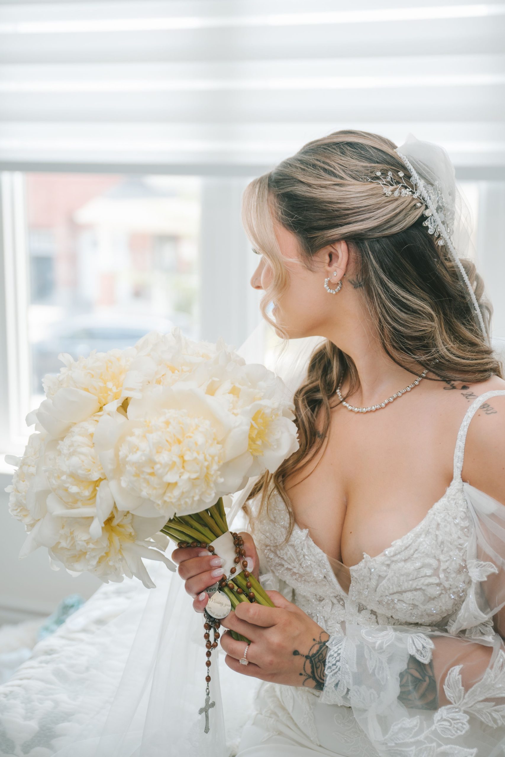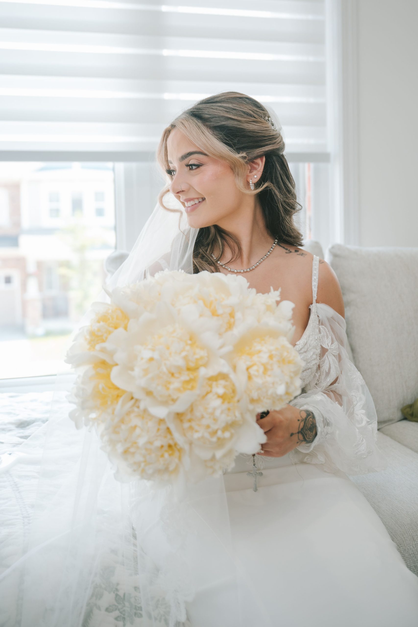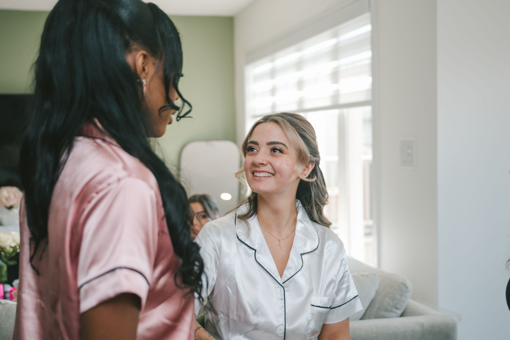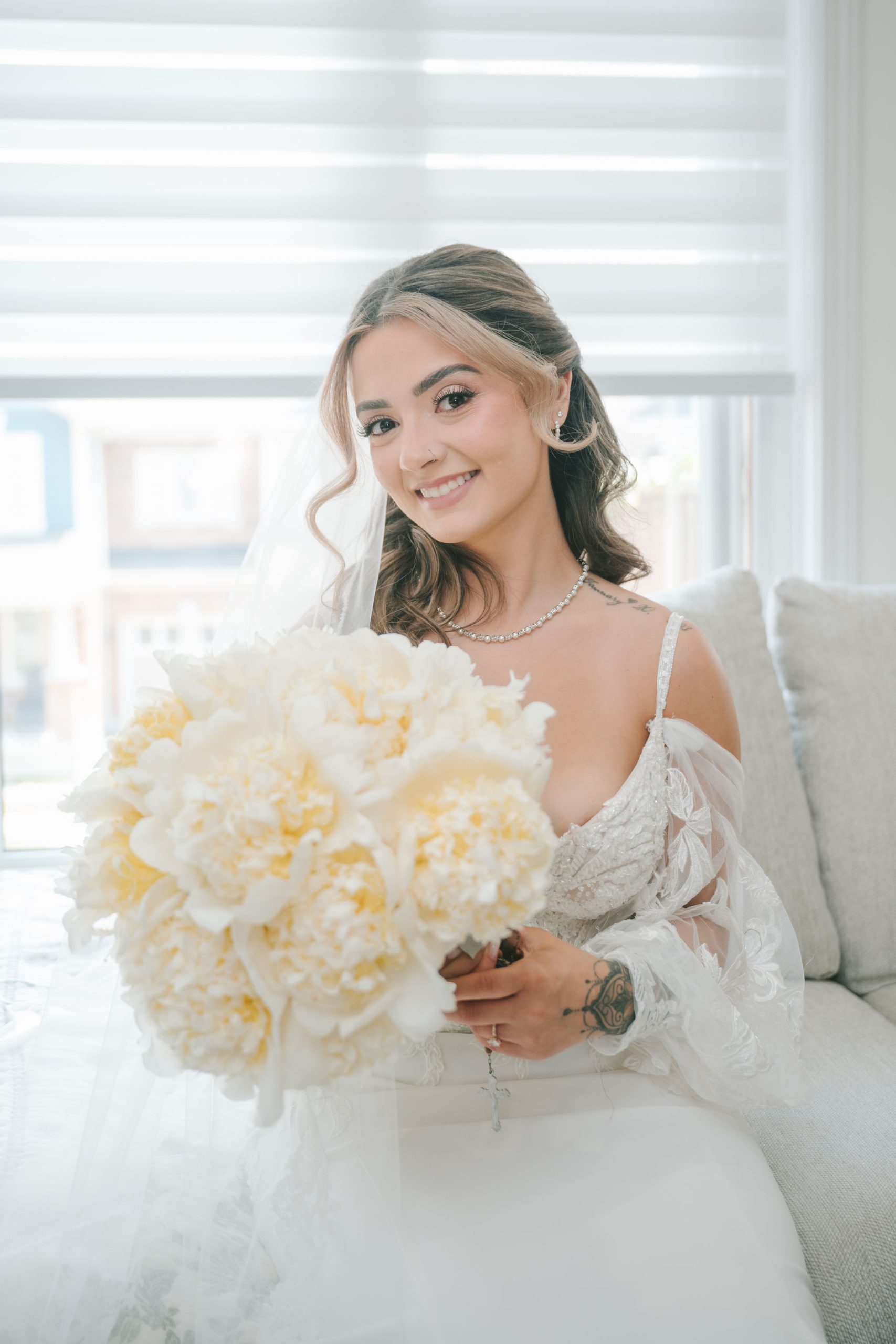 The space they had was bathed in soft light and framed with the softest hues of ballet pink and sage green, with black and white. Every detail of that day was touched with intention: greenery intertwined with blooms of peonies and dusty roses, delicate candlelight reflecting softly off every petal and smile.