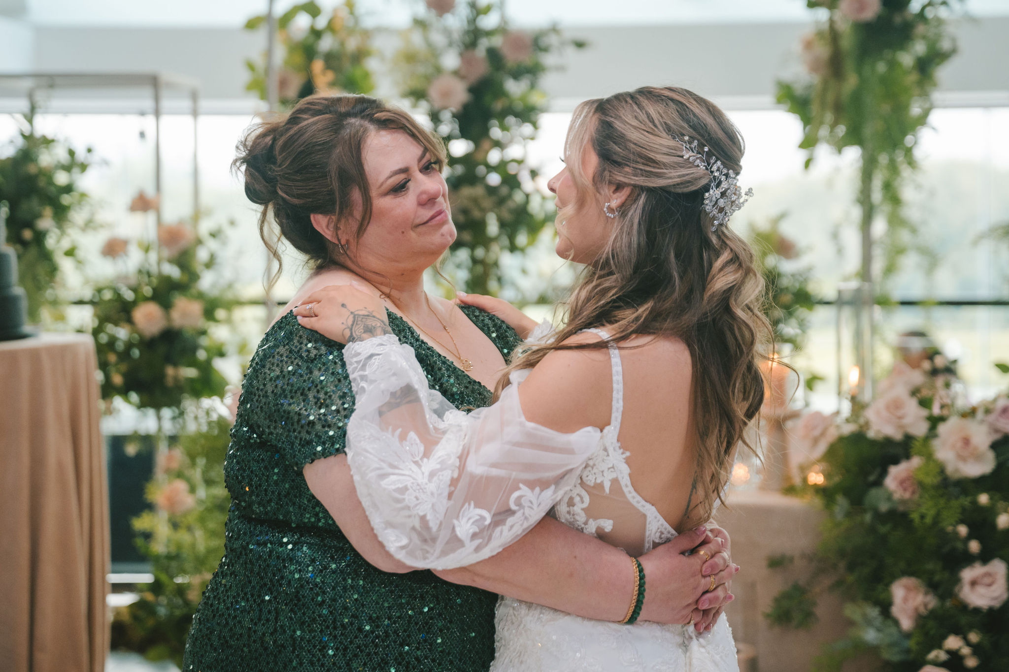 Between all of the excitement, there were quiet moments, too, that were made up of a shared smile during the newlyweds’ first dance, a tender embrace after a toast, and a moment of stillness in the middle of it all.