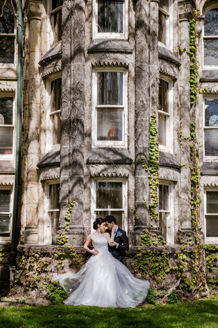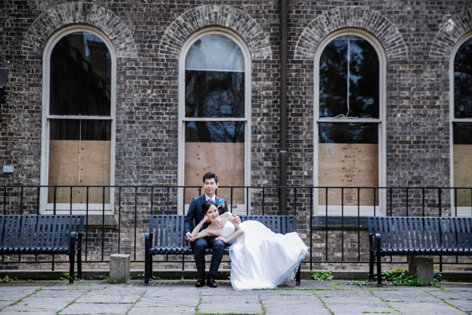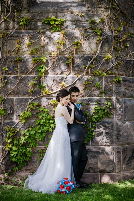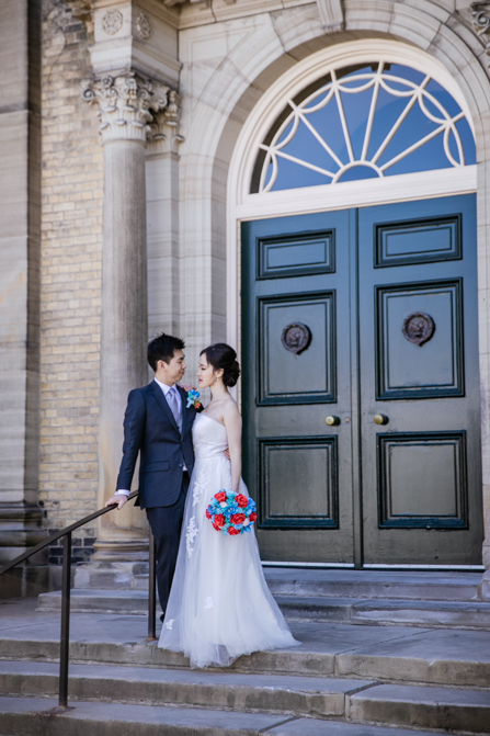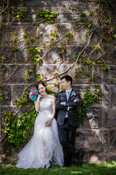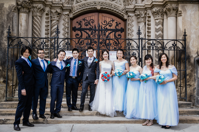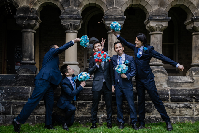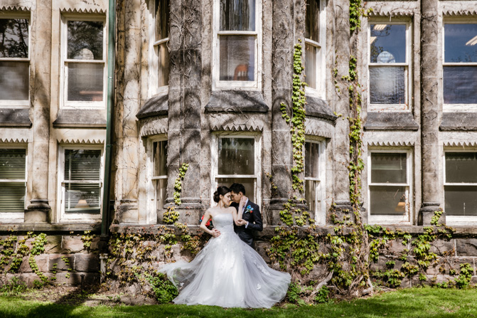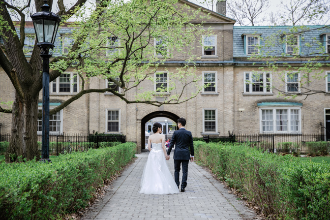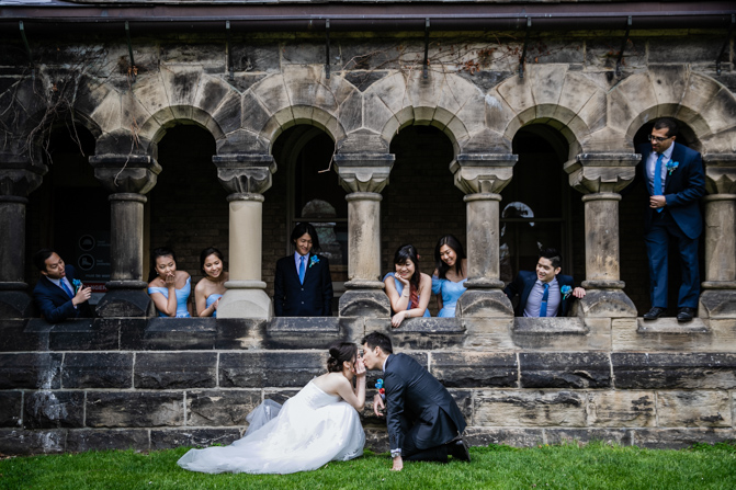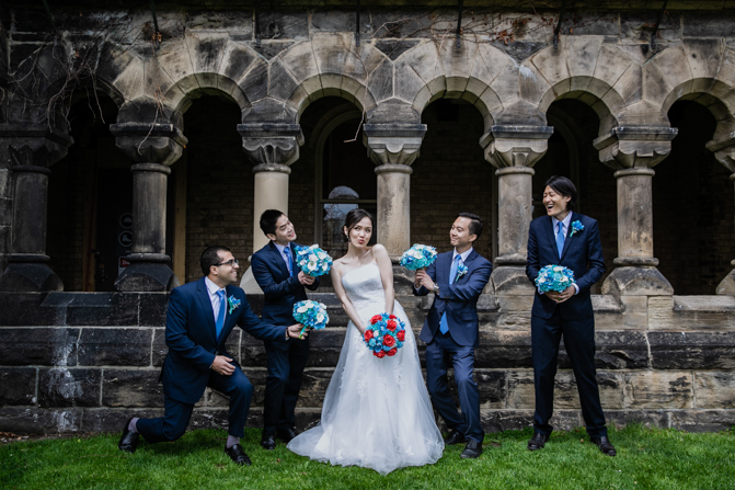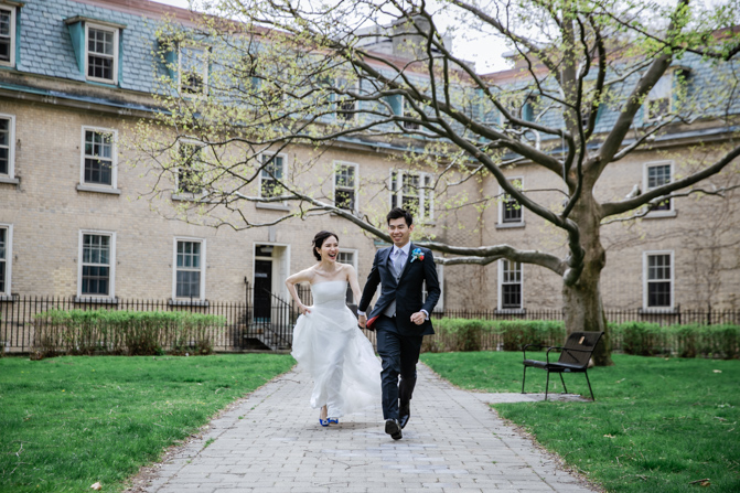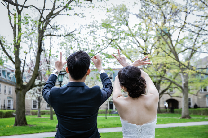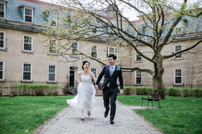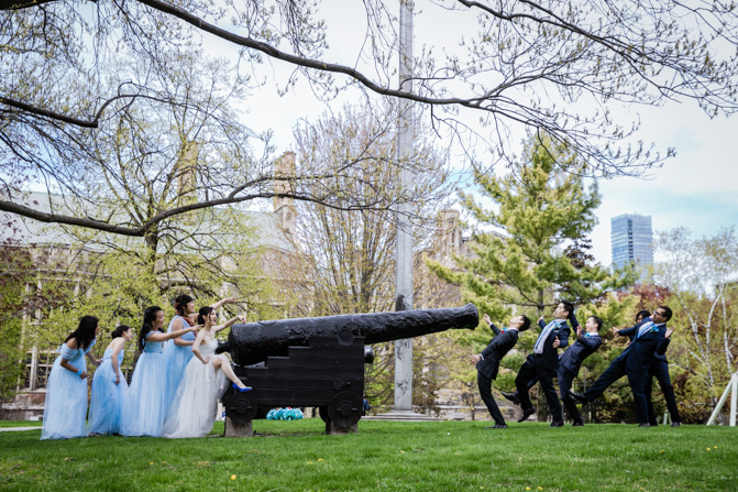 For the post-wedding couple shoot, we went to the University of Toronto, where the cherry blossoms were in full bloom. They never last long, so we felt so blessed to have this pretty floral backdrop. Lin and Timothy are a very sweet couple who looked out for each other all day long and were a joy to photograph. First, we captured intimate and romantic couple images and when their bridal party joined in for the shoot, we saw their playful sides. What a diverse collection of imagery we caught in a really short time.