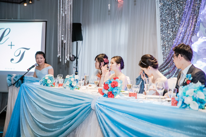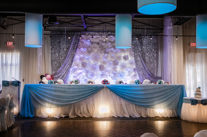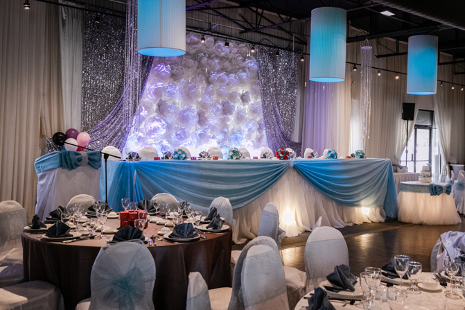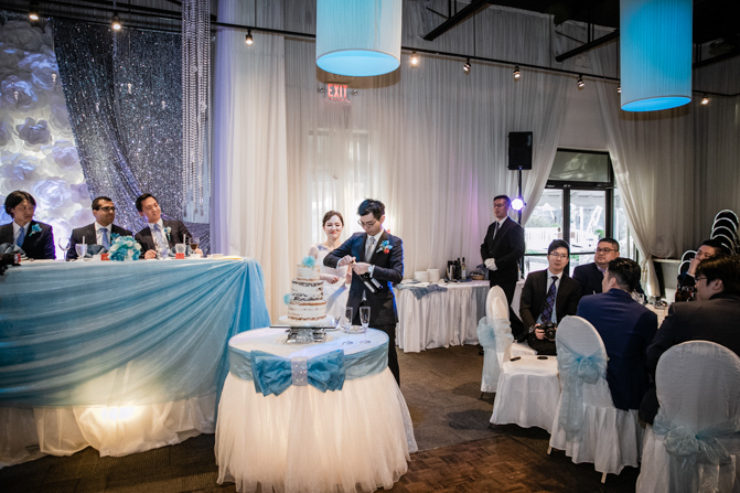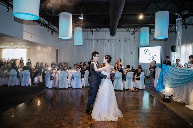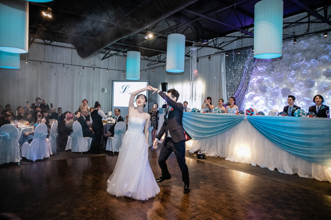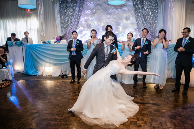 At the Shangrila Banquet Hall in Markham, an elegant and luxurious set-up was complete. Blue decorations added a splash of color to the space and the guests were all commenting on how spectacular it looked. The couple was given a loud and energetic welcome from everyone as they arrived at the formal dinner. Speeches and cake cutting happened before the couple’s first dance and we were very impressed with their skills on the dance floor, including the high lifts and faultless spins. It was the beginning of much dancing – what a night!