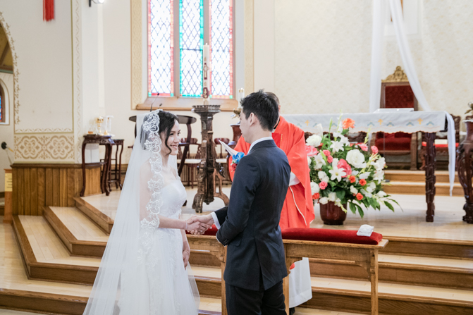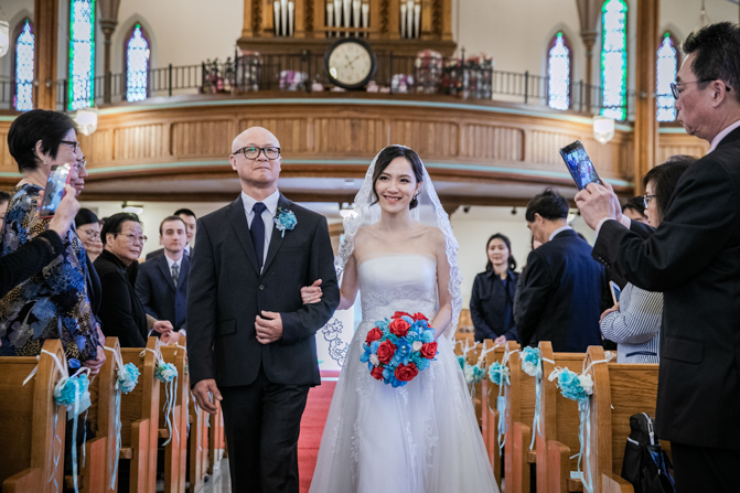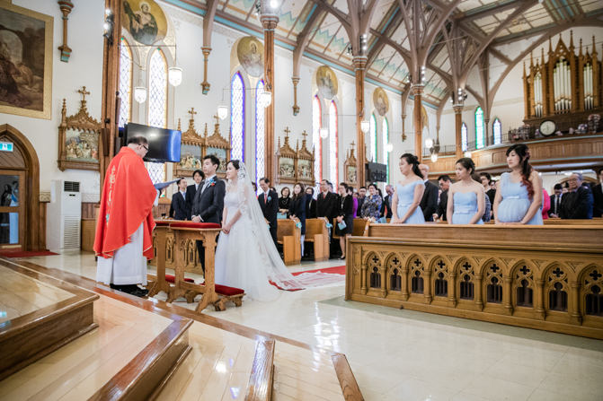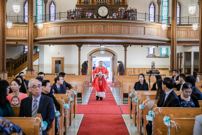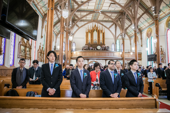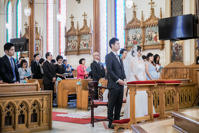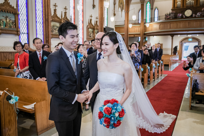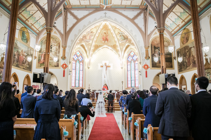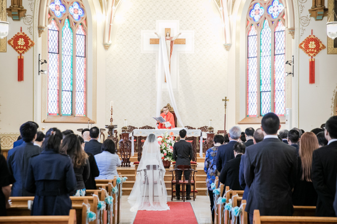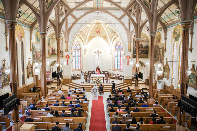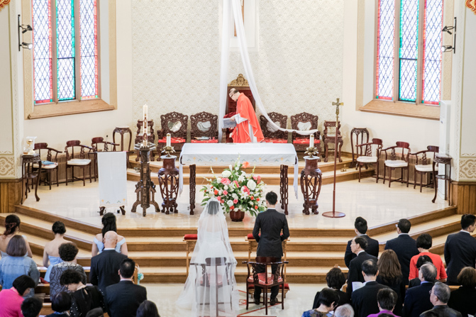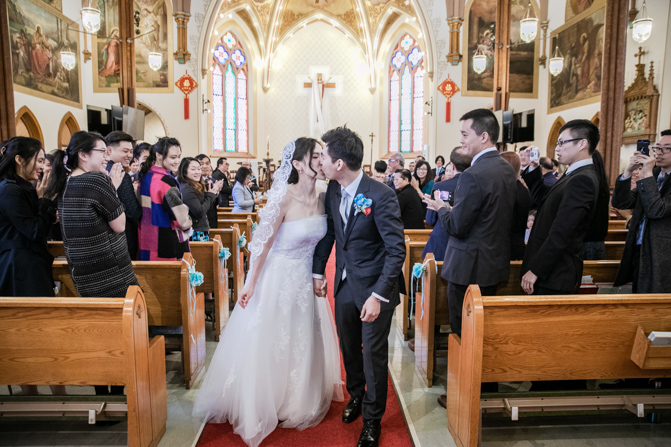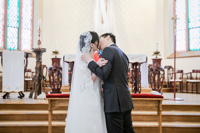 The ceremony was full of grace and joy as the couple exchanged vows and promised to love each other until the end of their days. The awe-inspiring architecture with massive gold archways and beautiful stained glass windows is unbelievable. It was such a stunning sight as the couple was married, kissed and walked down the aisle together.