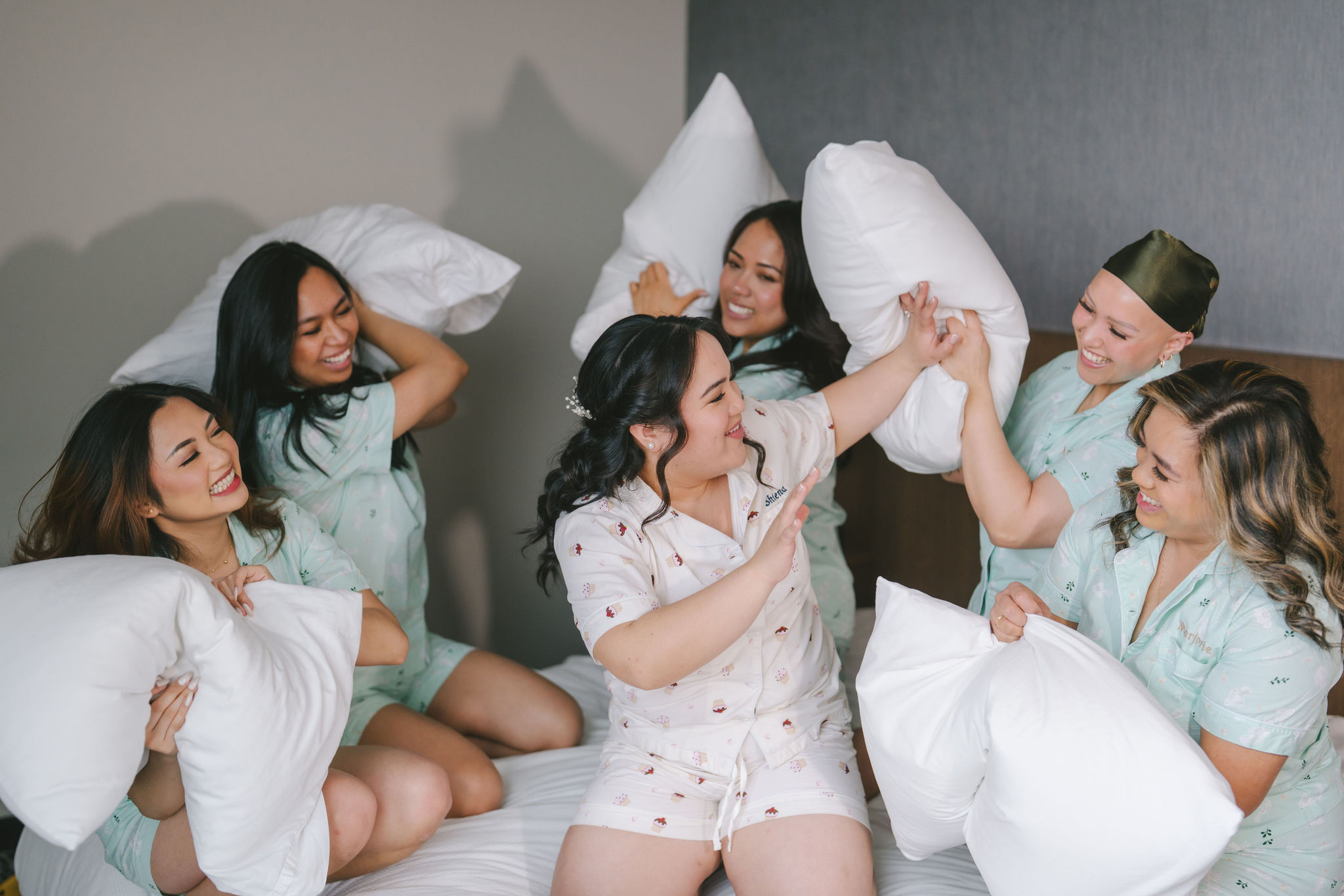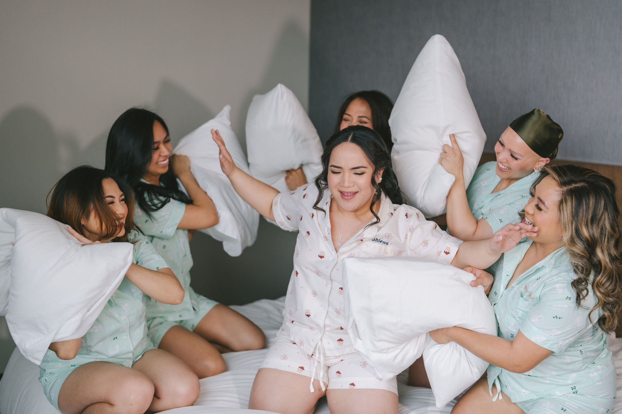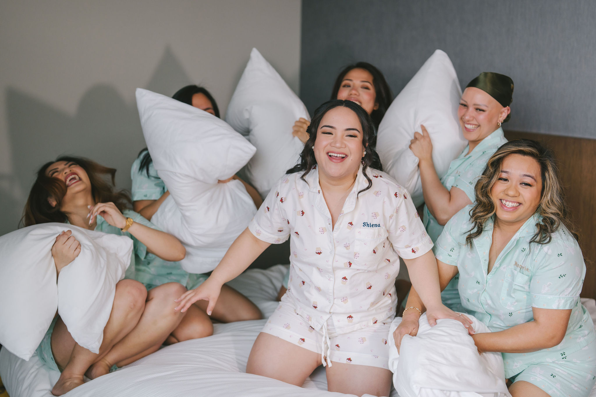 Next, they crowded around a sitting and smiling Shiena as they had different make-up tools in hand and pretended to be glamming her up. And lastly, they were on the bed, and they looked like they were having a big ‘ol slumber party.