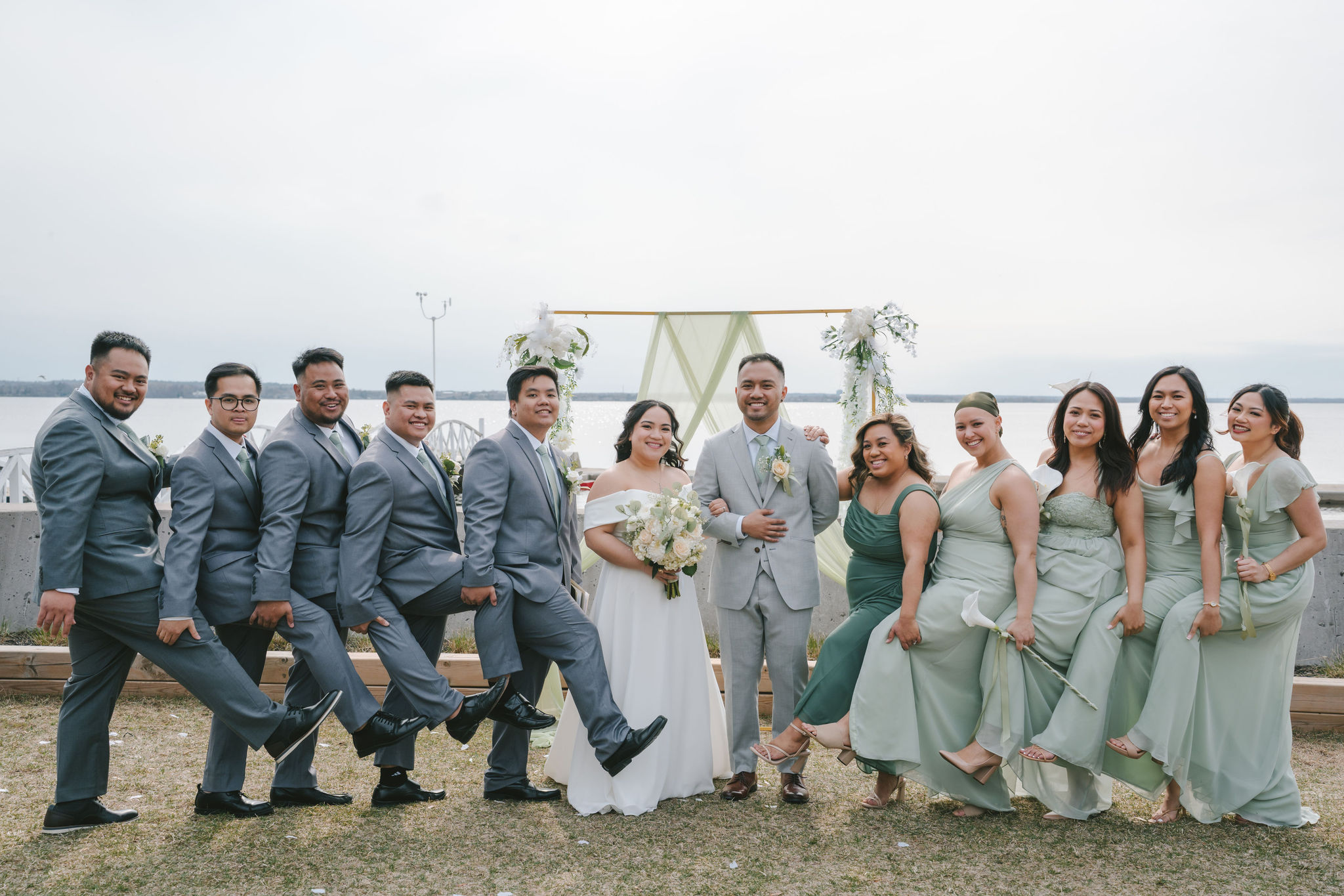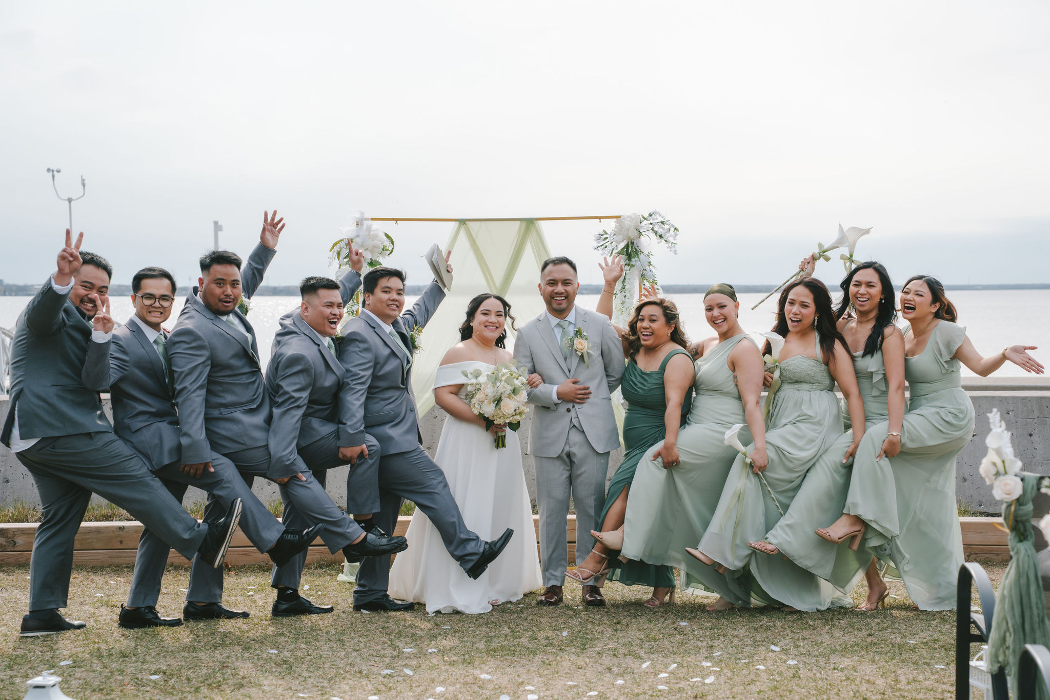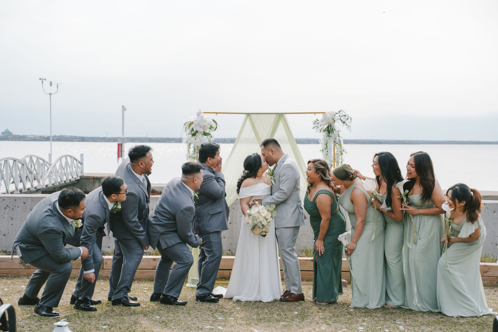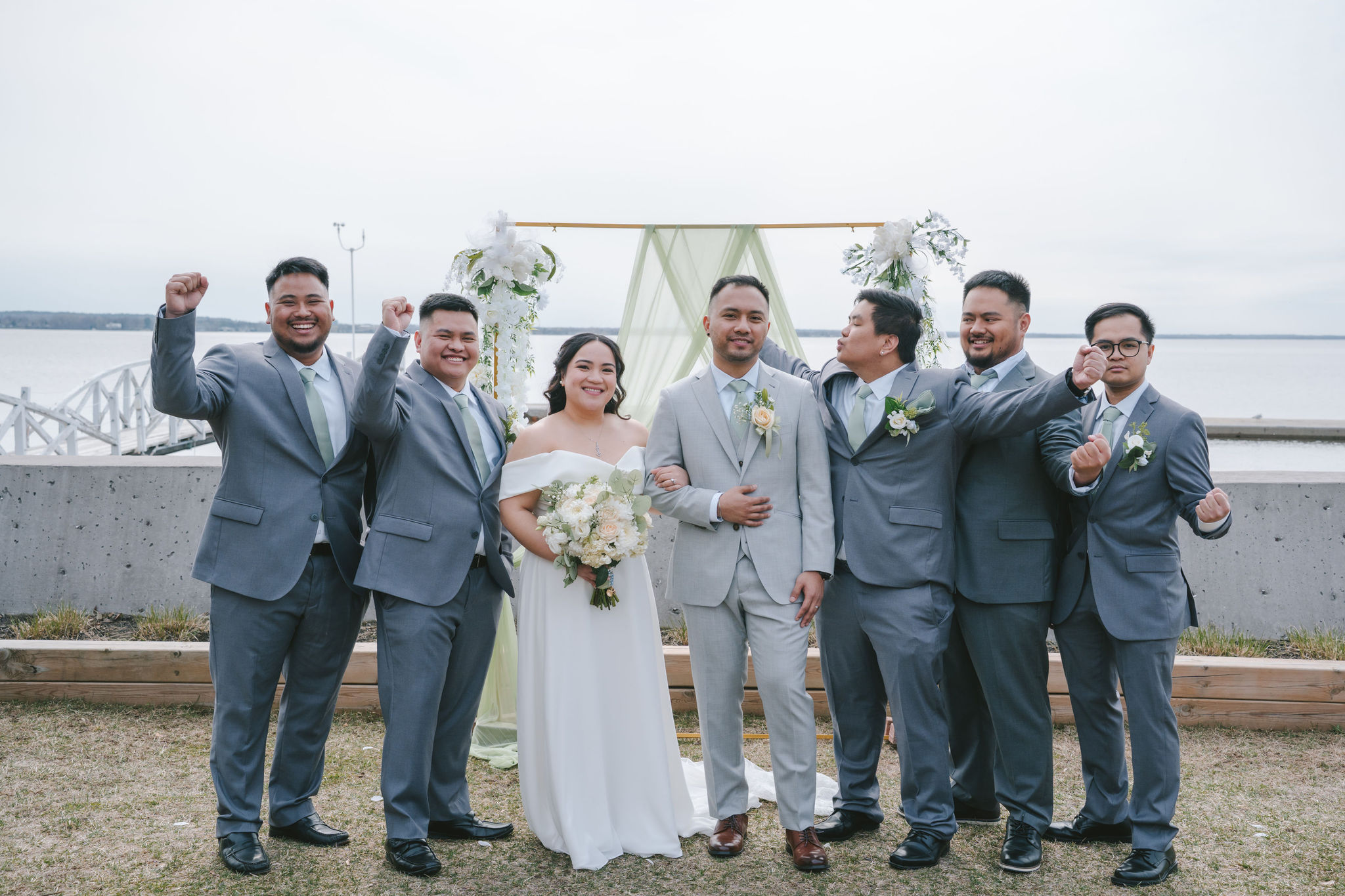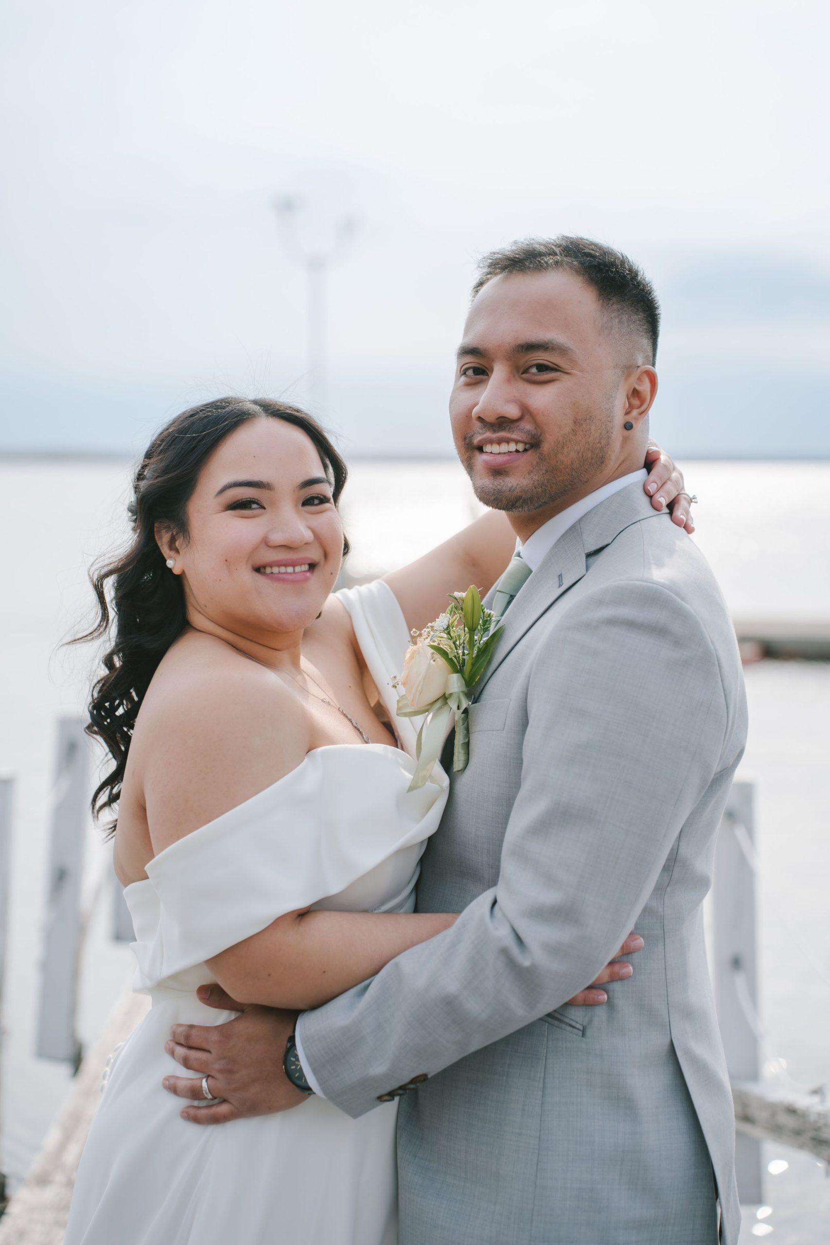 Every one of them was so quirky. They kept on doing different poses around the newlyweds, and they always found a way to bust down a move. Once the group pictures were out of the way, I asked for Shiena and Jason to come out by the dock. That day was especially nice, the wind felt cool and the sun was out. It was the perfect scenery for their couple pictures as husband and wife.