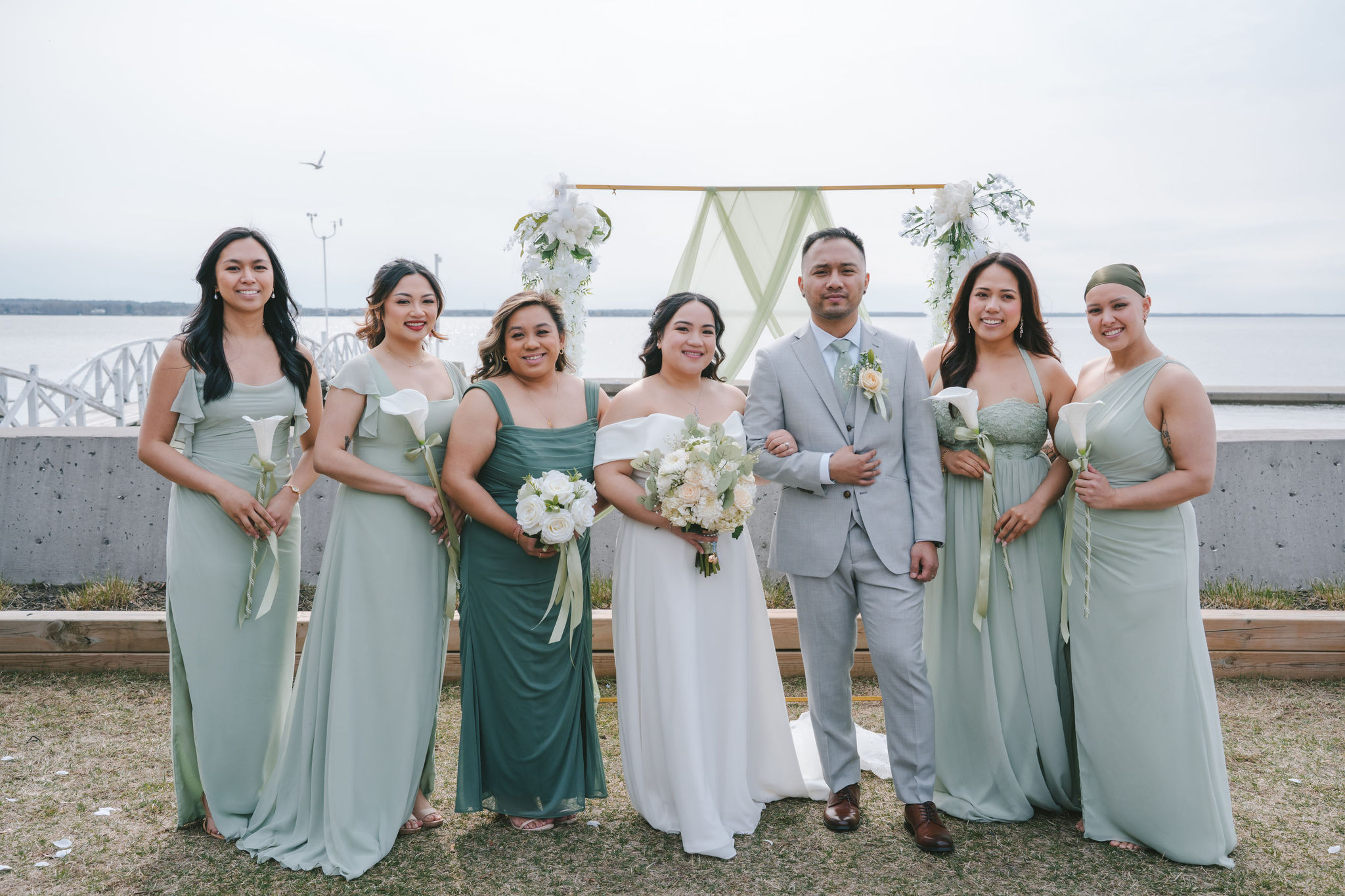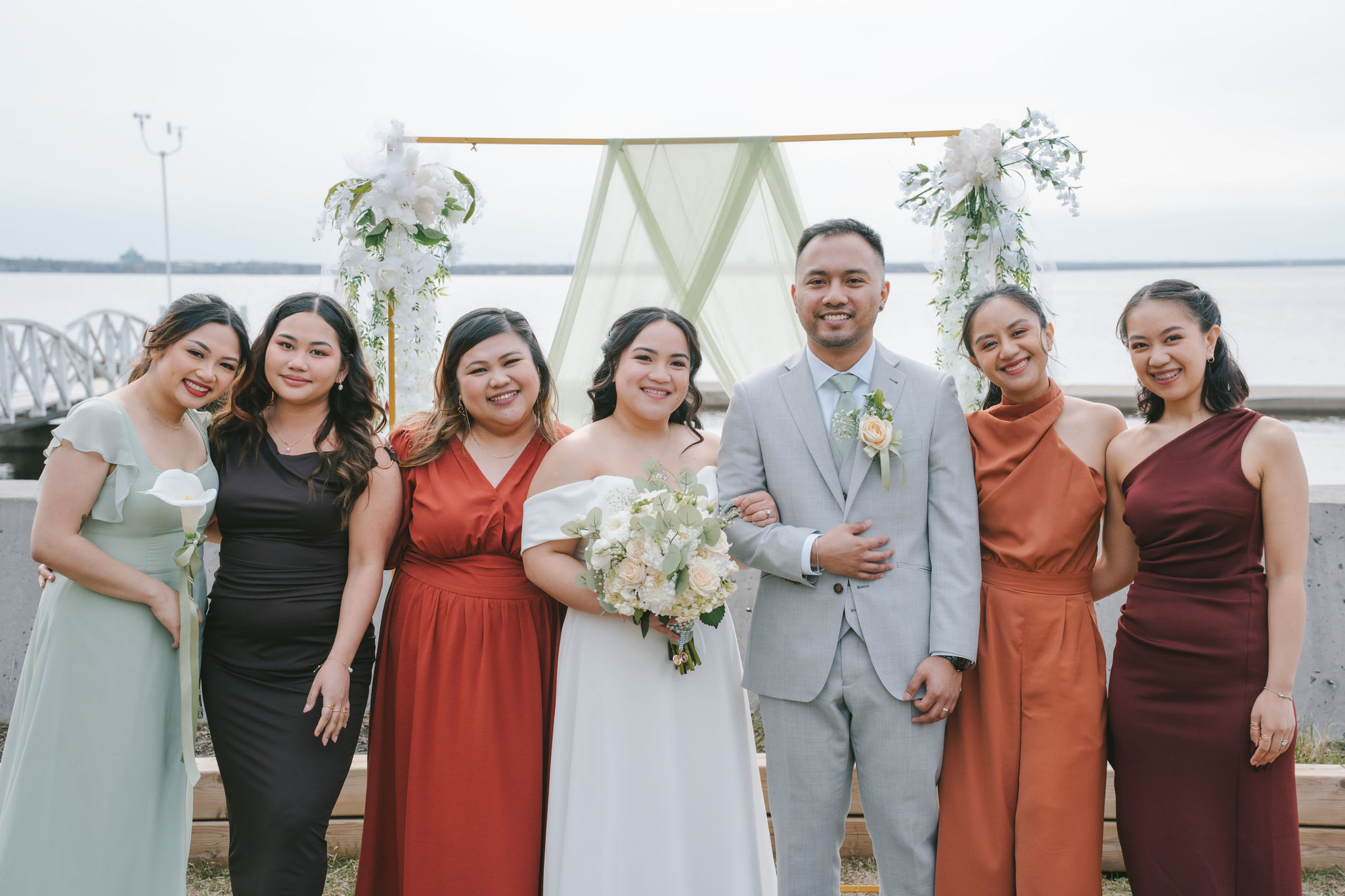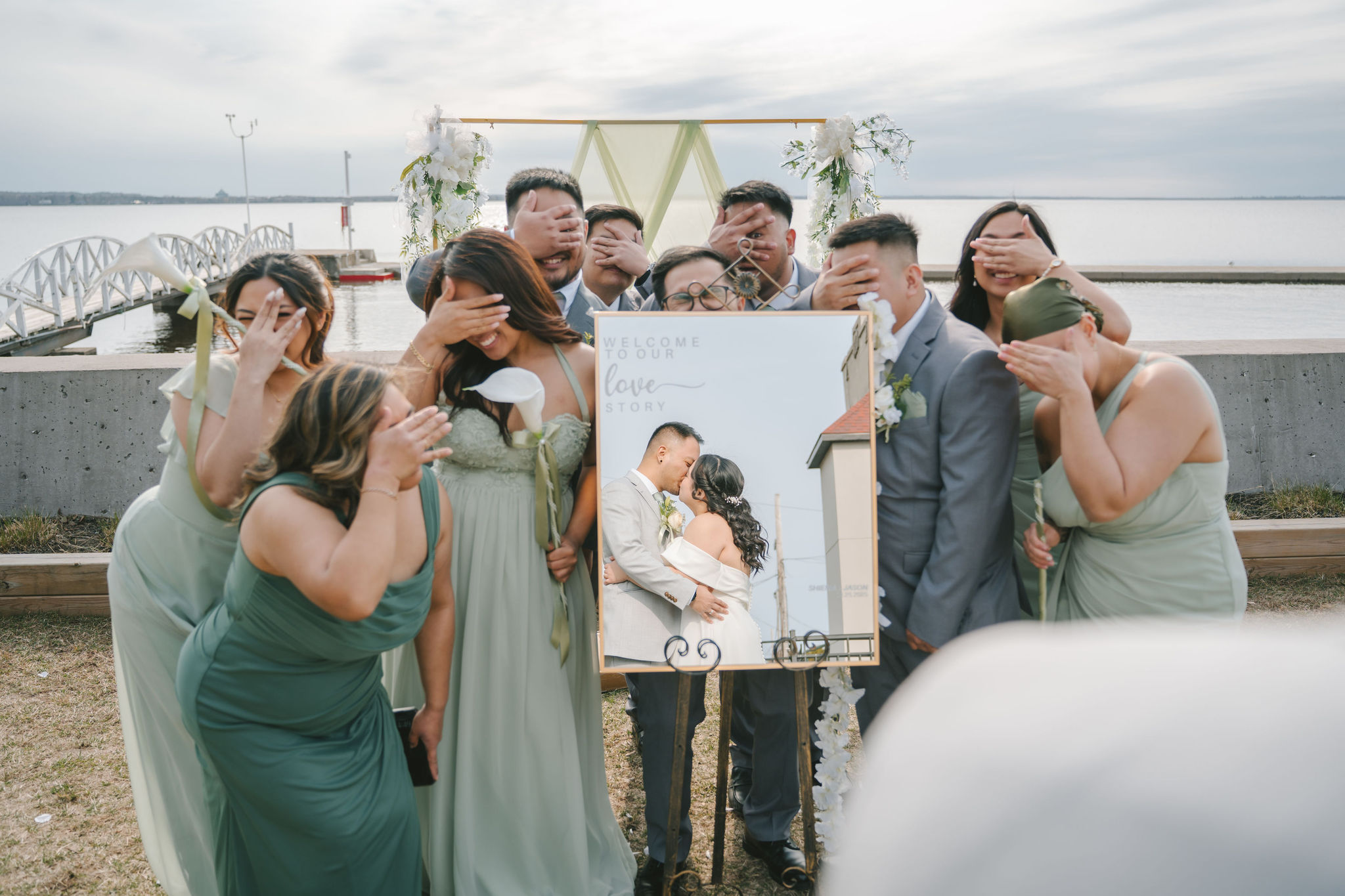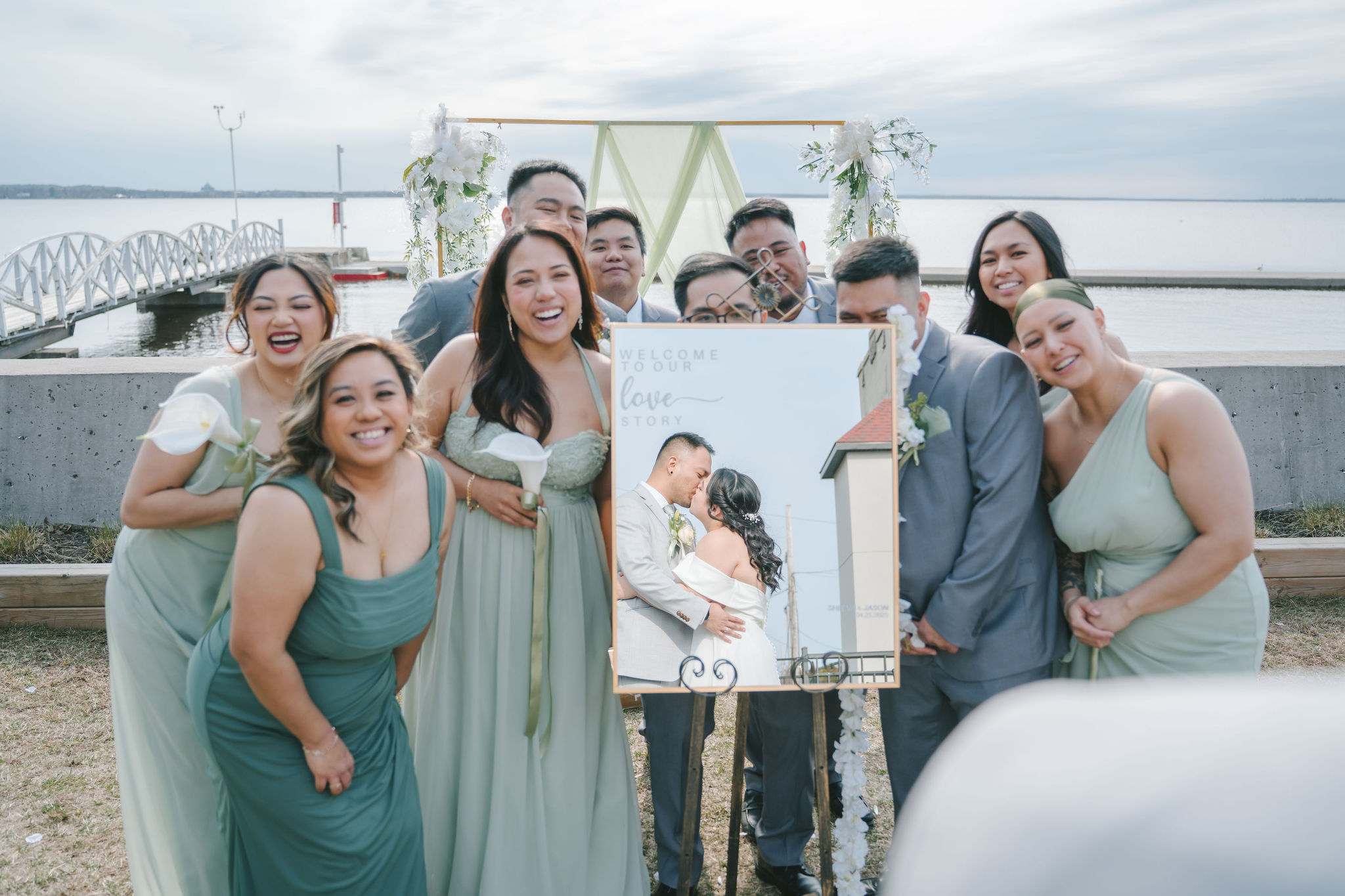 Every one of them was so quirky. They kept on doing different poses around the newlyweds, and they always found a way to bust down a move. Once the group pictures were out of the way, I asked for Shiena and Jason to come out by the dock. That day was especially nice, the wind felt cool and the sun was out. It was the perfect scenery for their couple pictures as husband and wife.