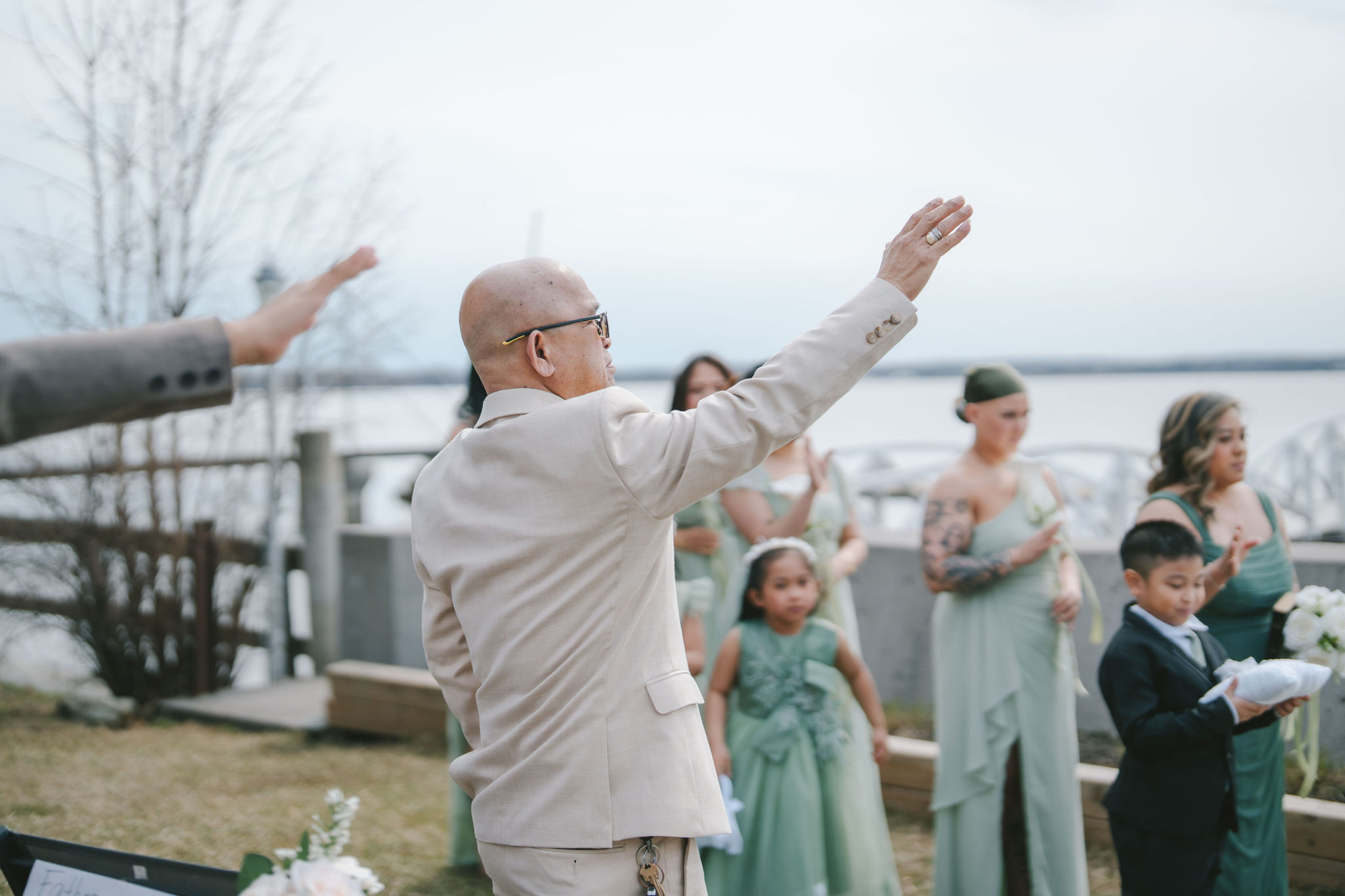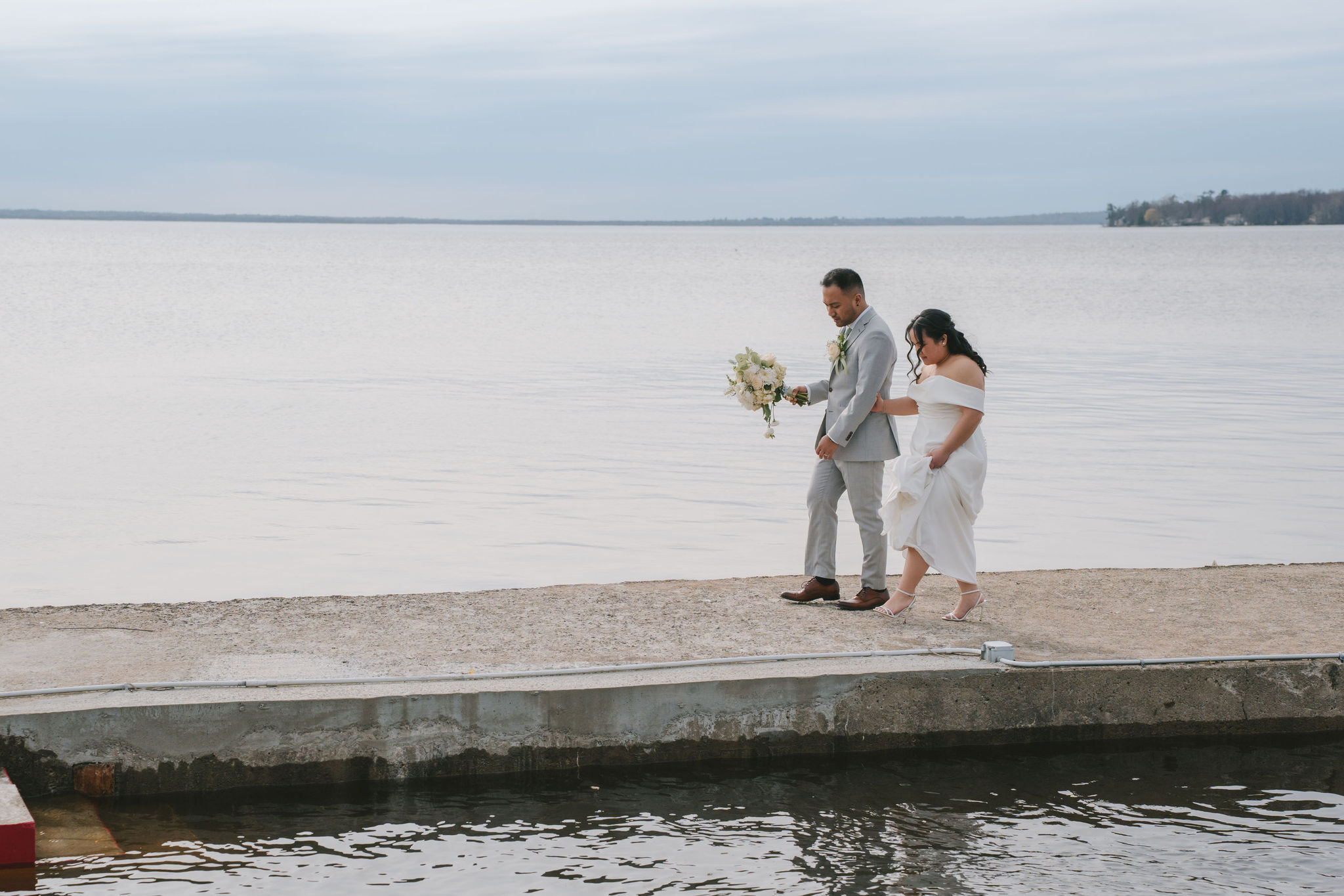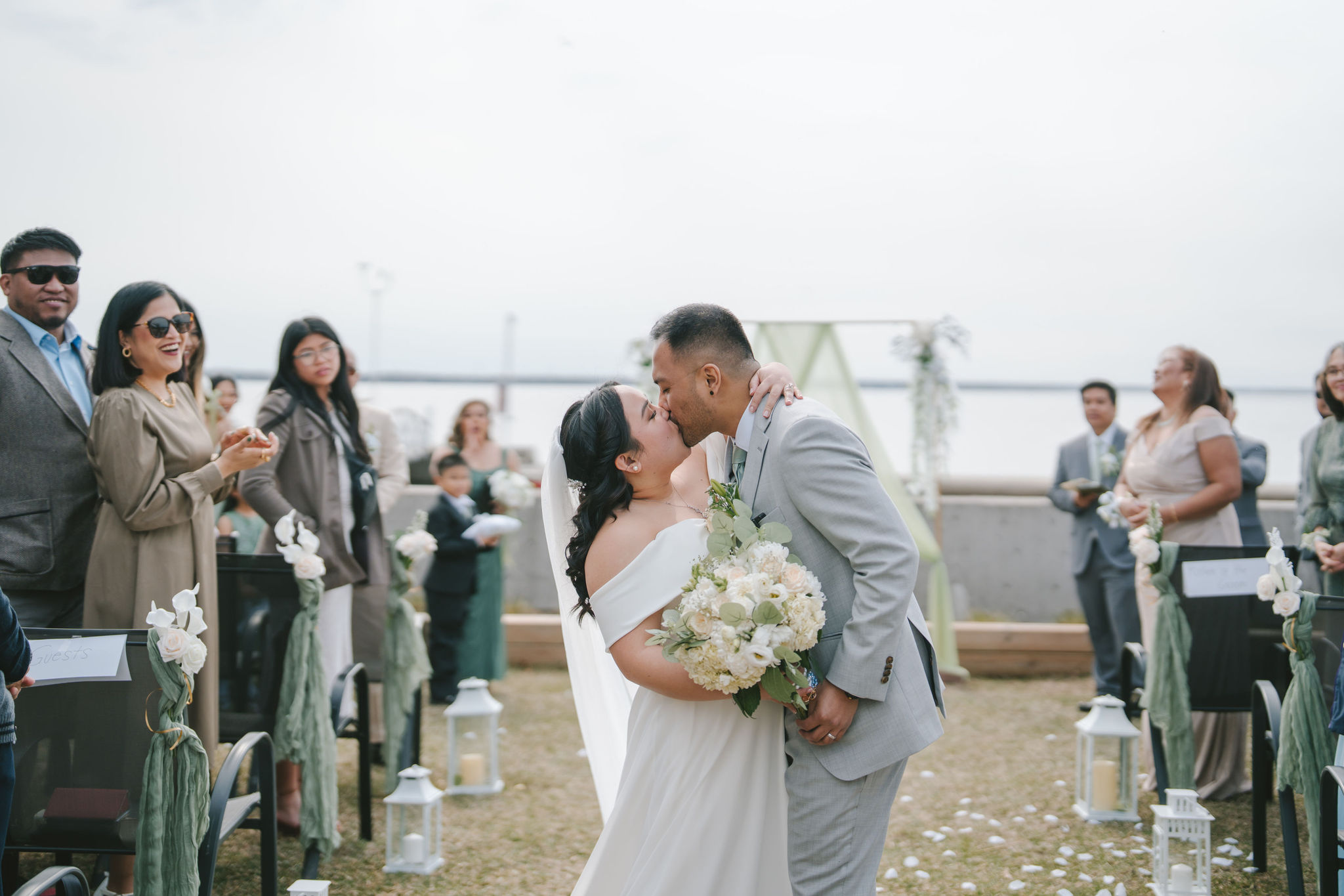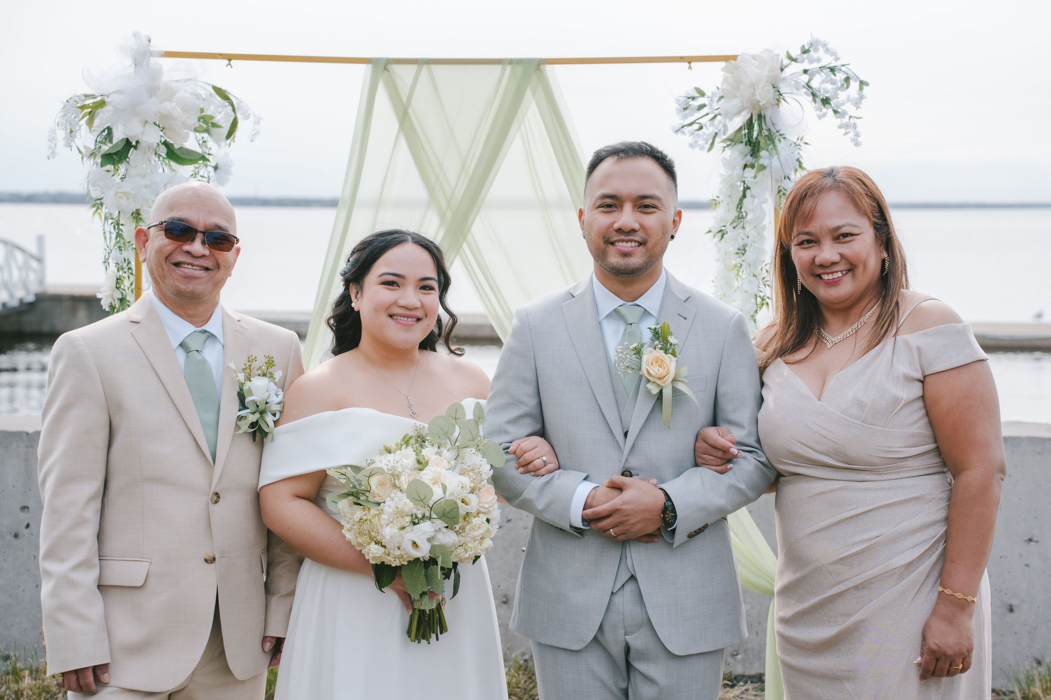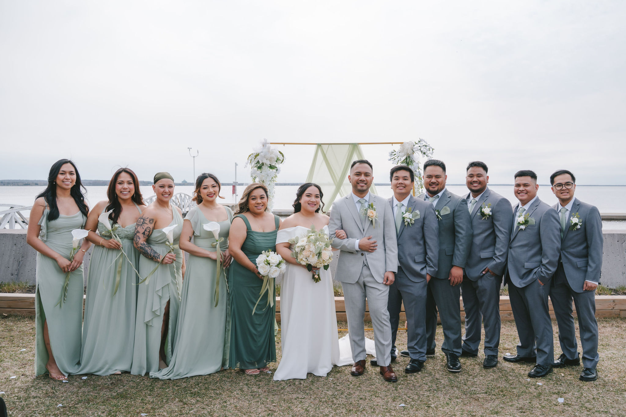 Every one of them was so quirky. They kept on doing different poses around the newlyweds, and they always found a way to bust down a move. Once the group pictures were out of the way, I asked for Shiena and Jason to come out by the dock. That day was especially nice, the wind felt cool and the sun was out. It was the perfect scenery for their couple pictures as husband and wife.