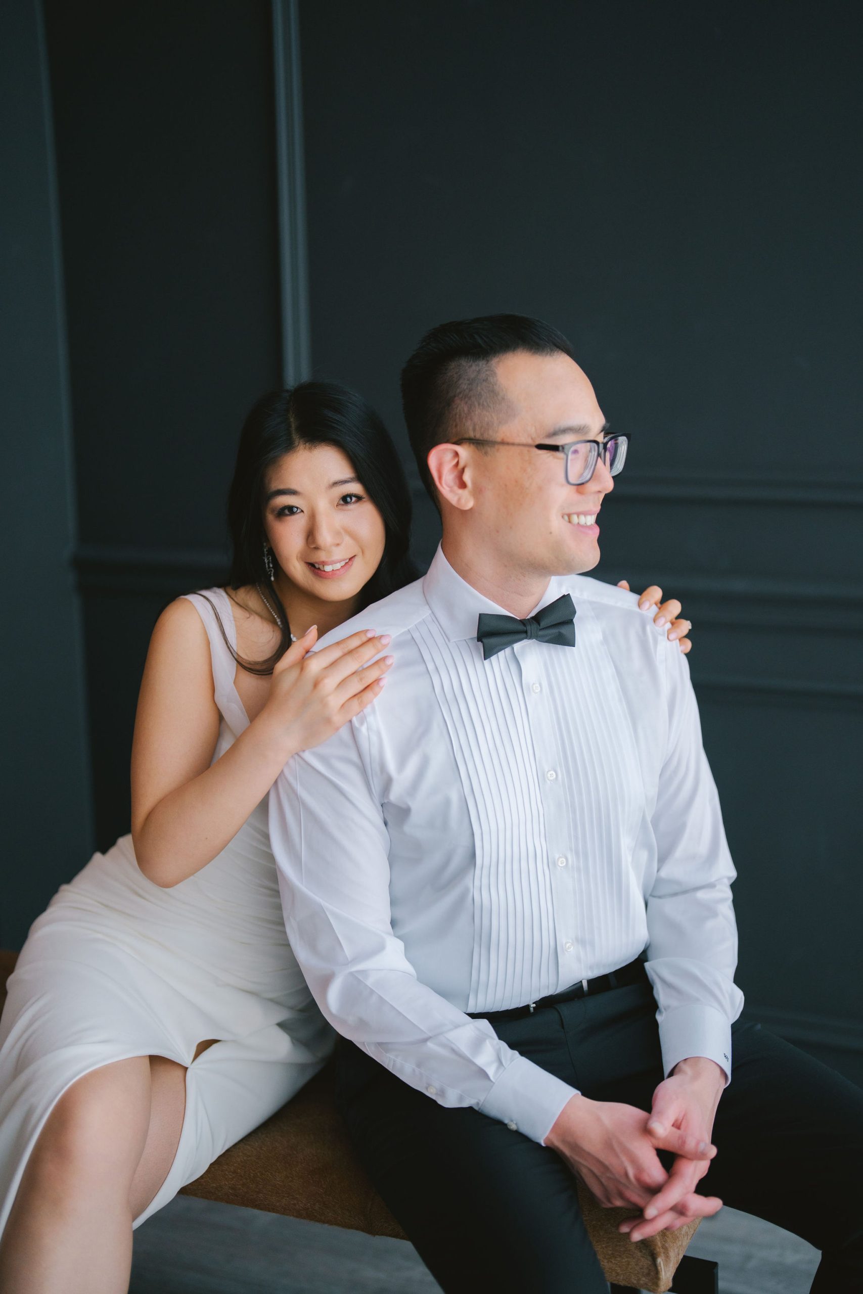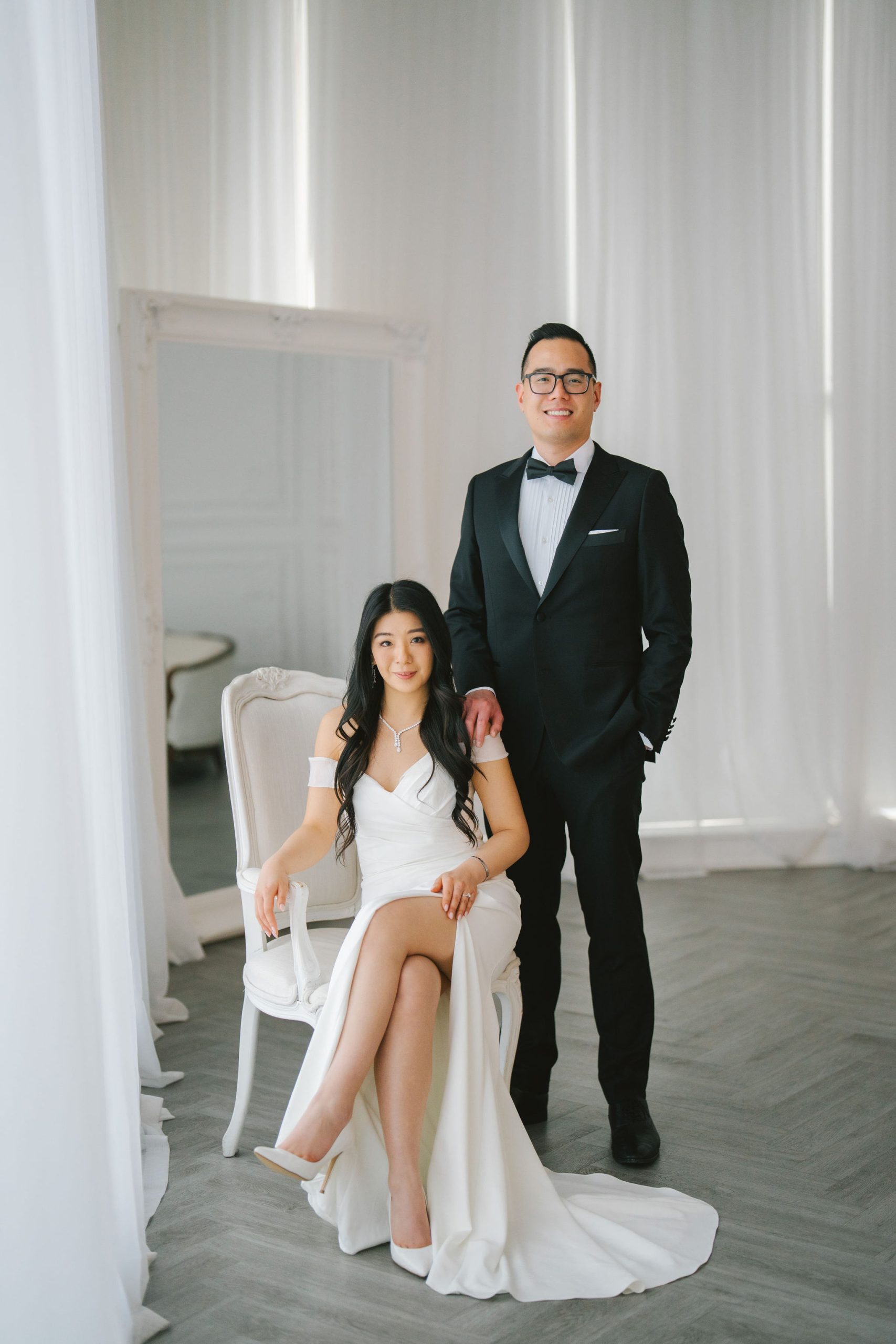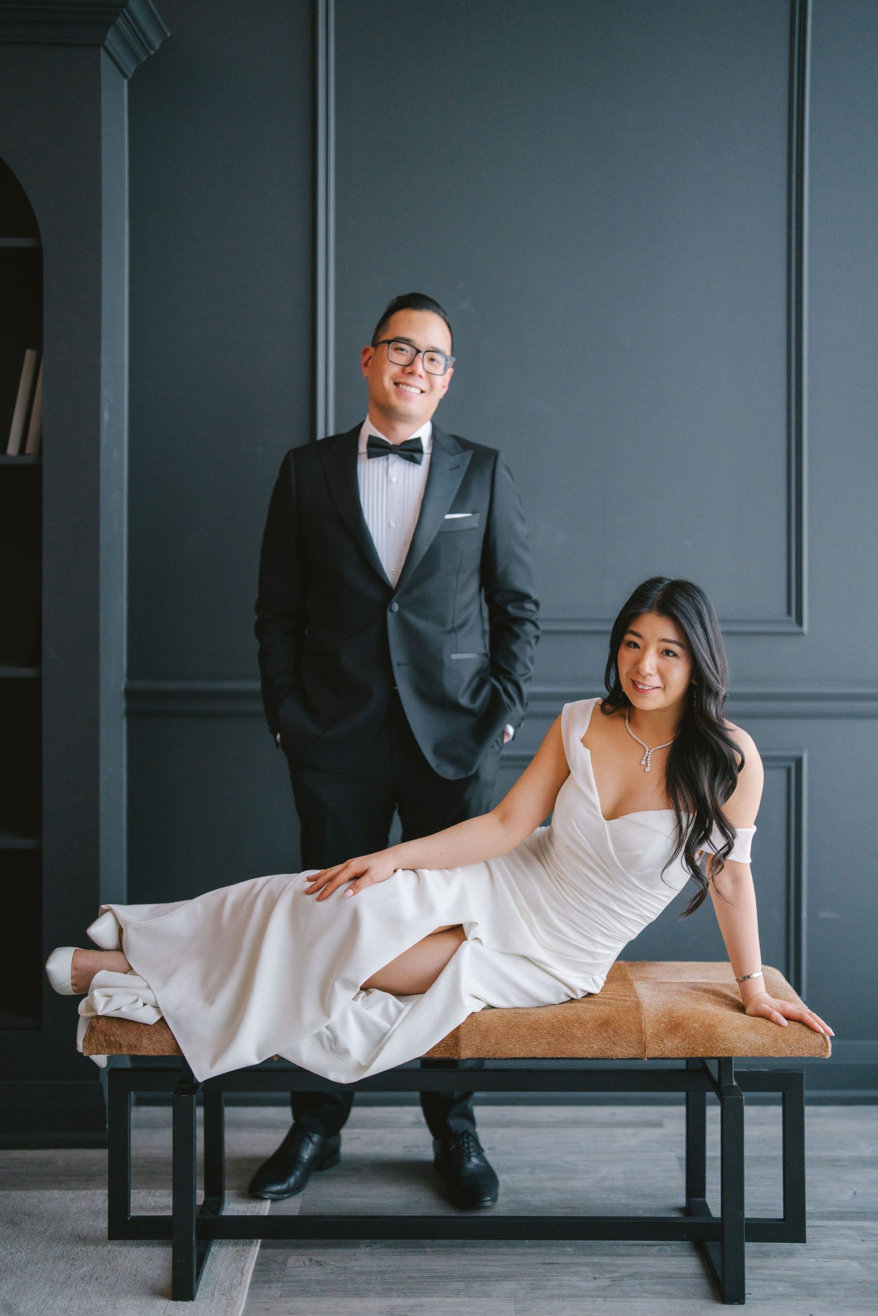 And because they were dressed so chic, I had this slightly old-fashioned idea of having Charmaine sit cross-legged and Wesley behind her with a hand on her shoulder. It very much resembled the old couple paintings back in the day, but I thought it was fitting for the aesthetic they were going for.