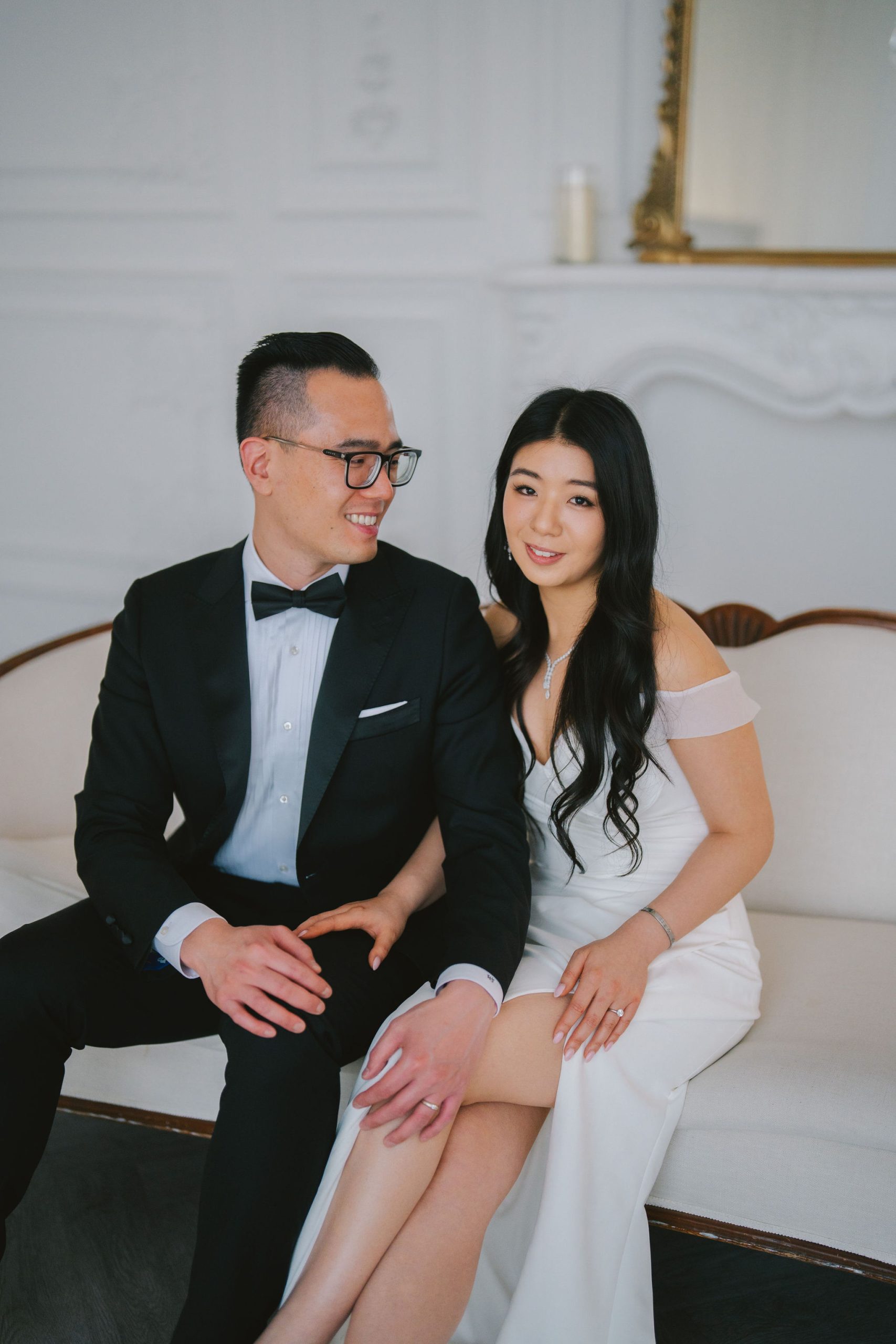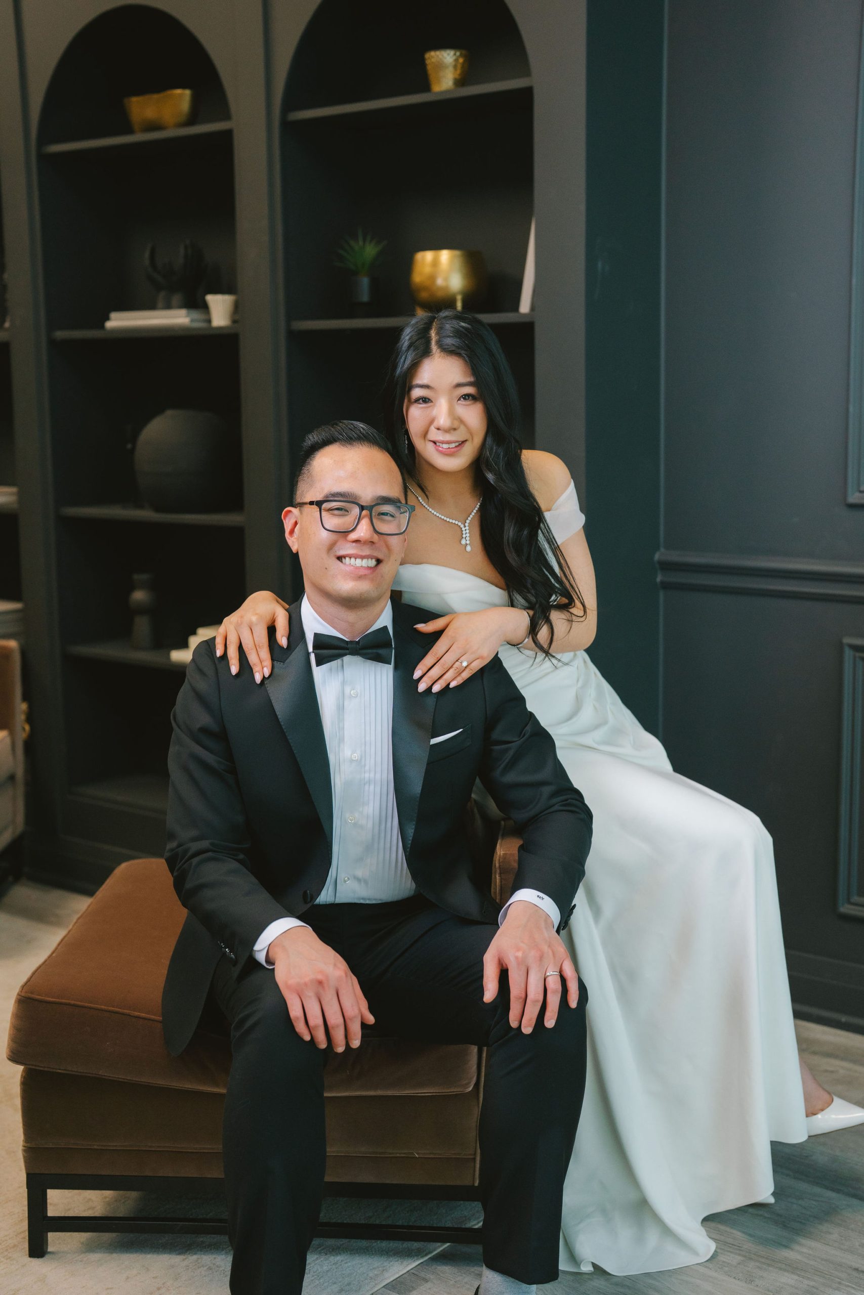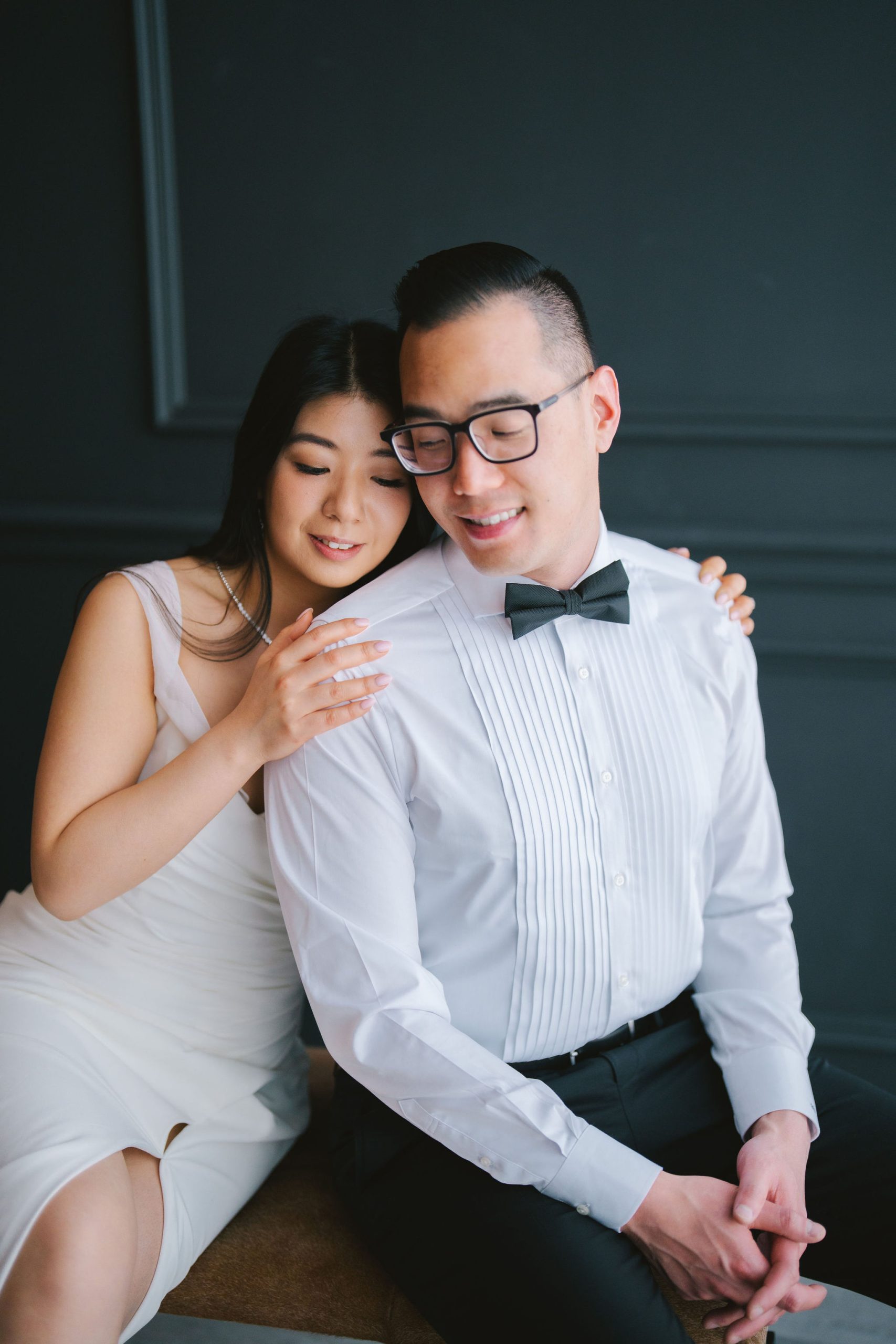 And because they were dressed so chic, I had this slightly old-fashioned idea of having Charmaine sit cross-legged and Wesley behind her with a hand on her shoulder. It very much resembled the old couple paintings back in the day, but I thought it was fitting for the aesthetic they were going for.