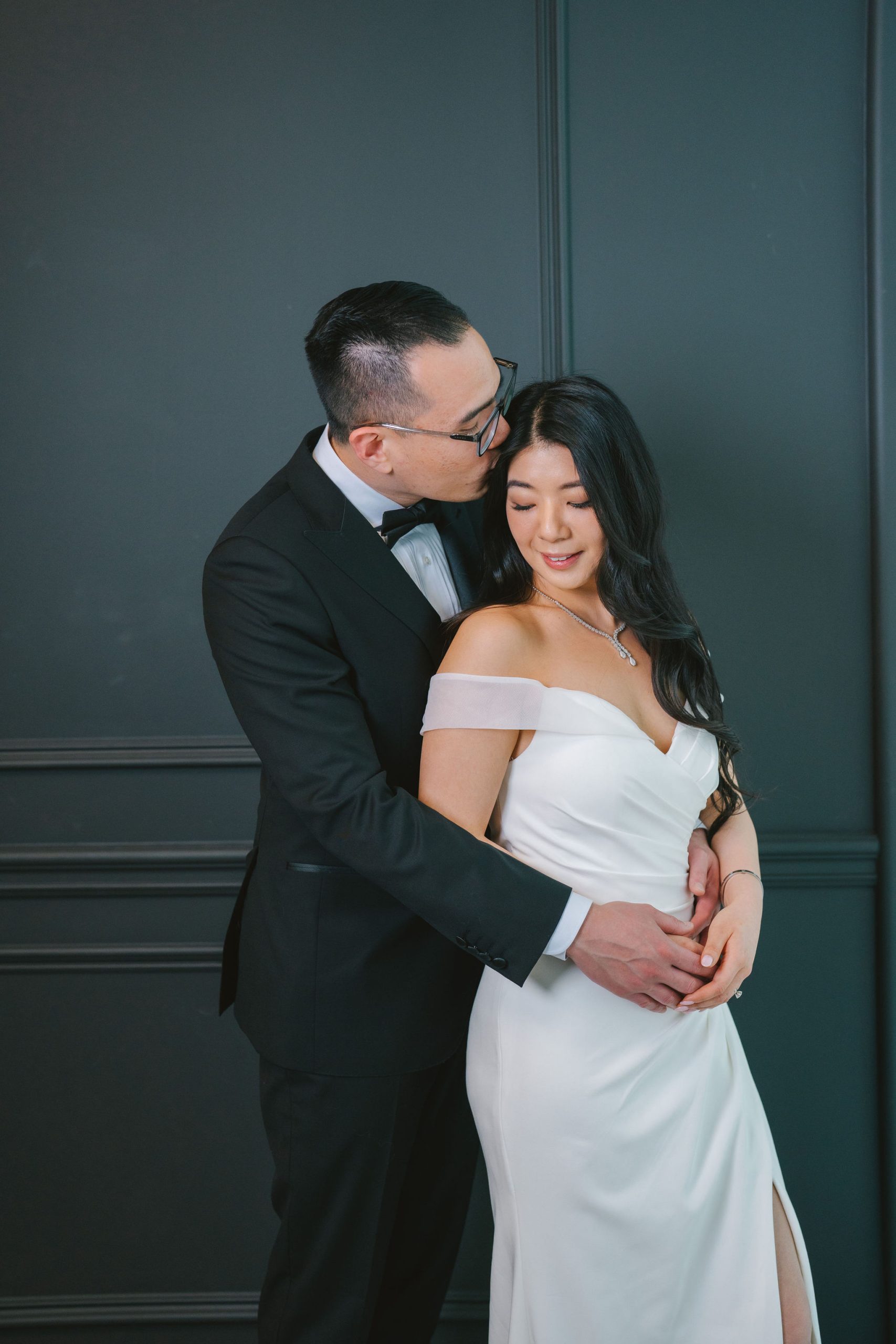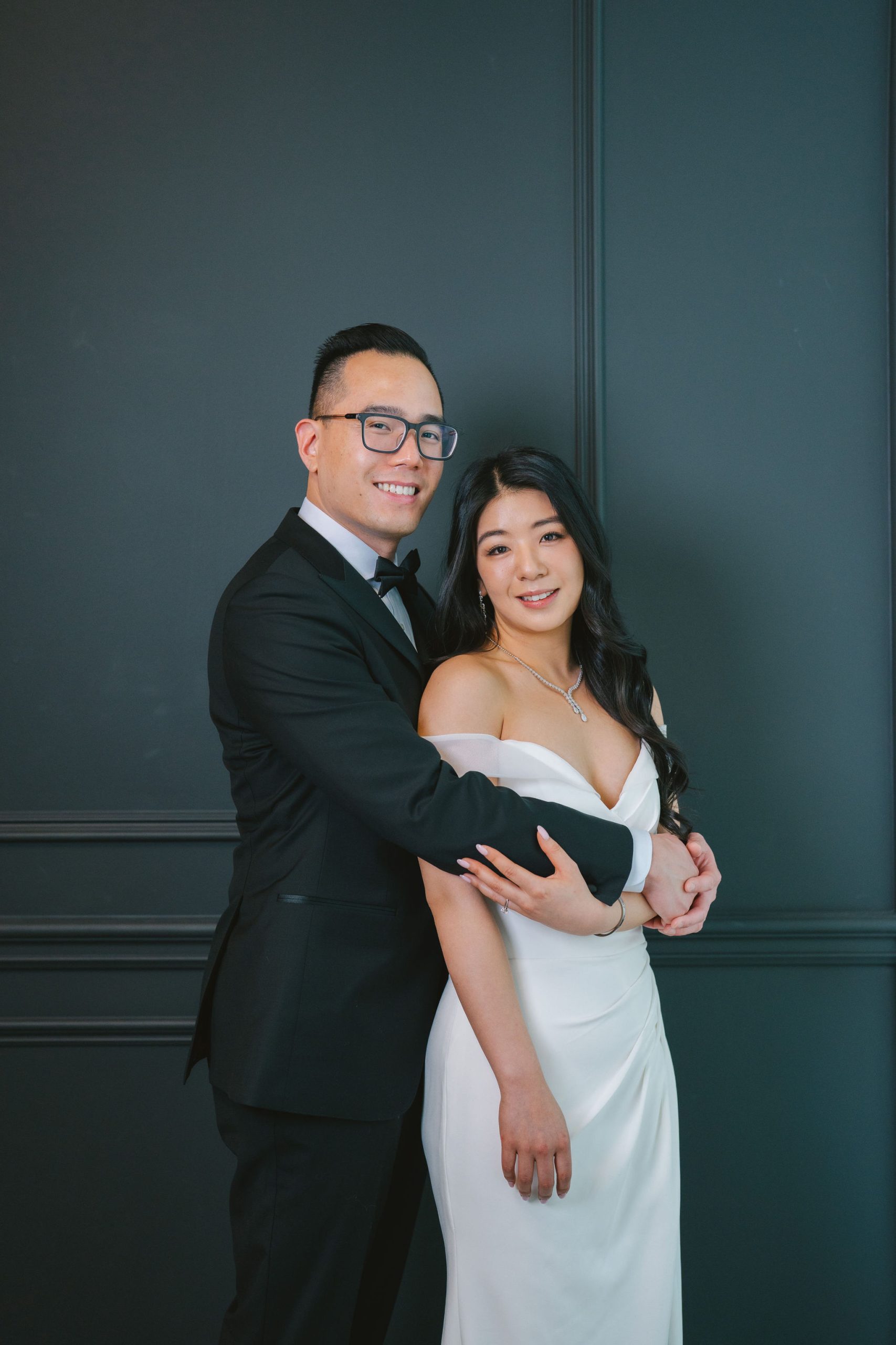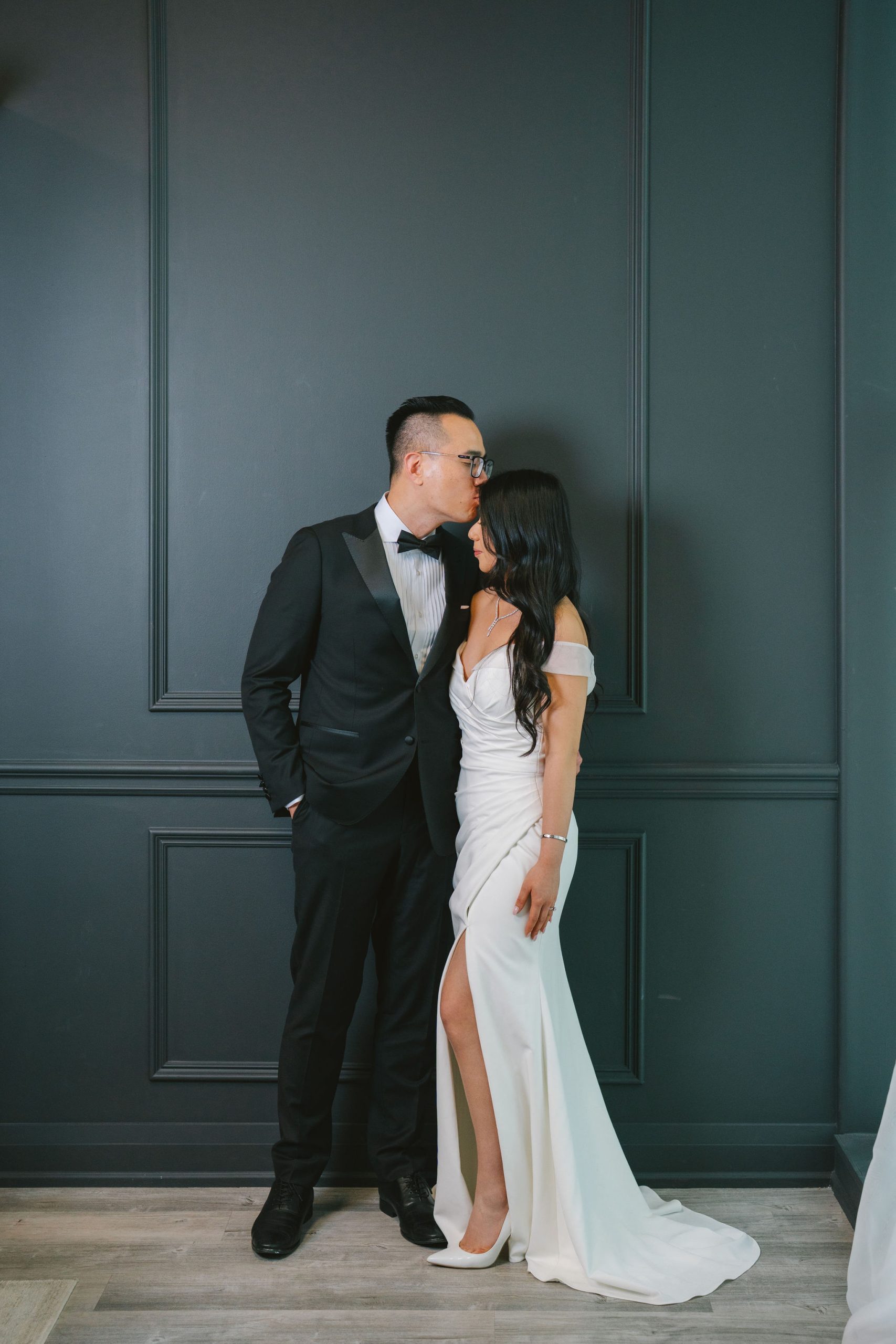 As for Wesley, he had on a black tuxedo with lapels that shone under the light, and a pair of black shoes that chameleon-ed very well with his dress pants. Because they were such a gorgeous couple, I wanted to be able to make their beauty and elegance stand out more in their pictures.