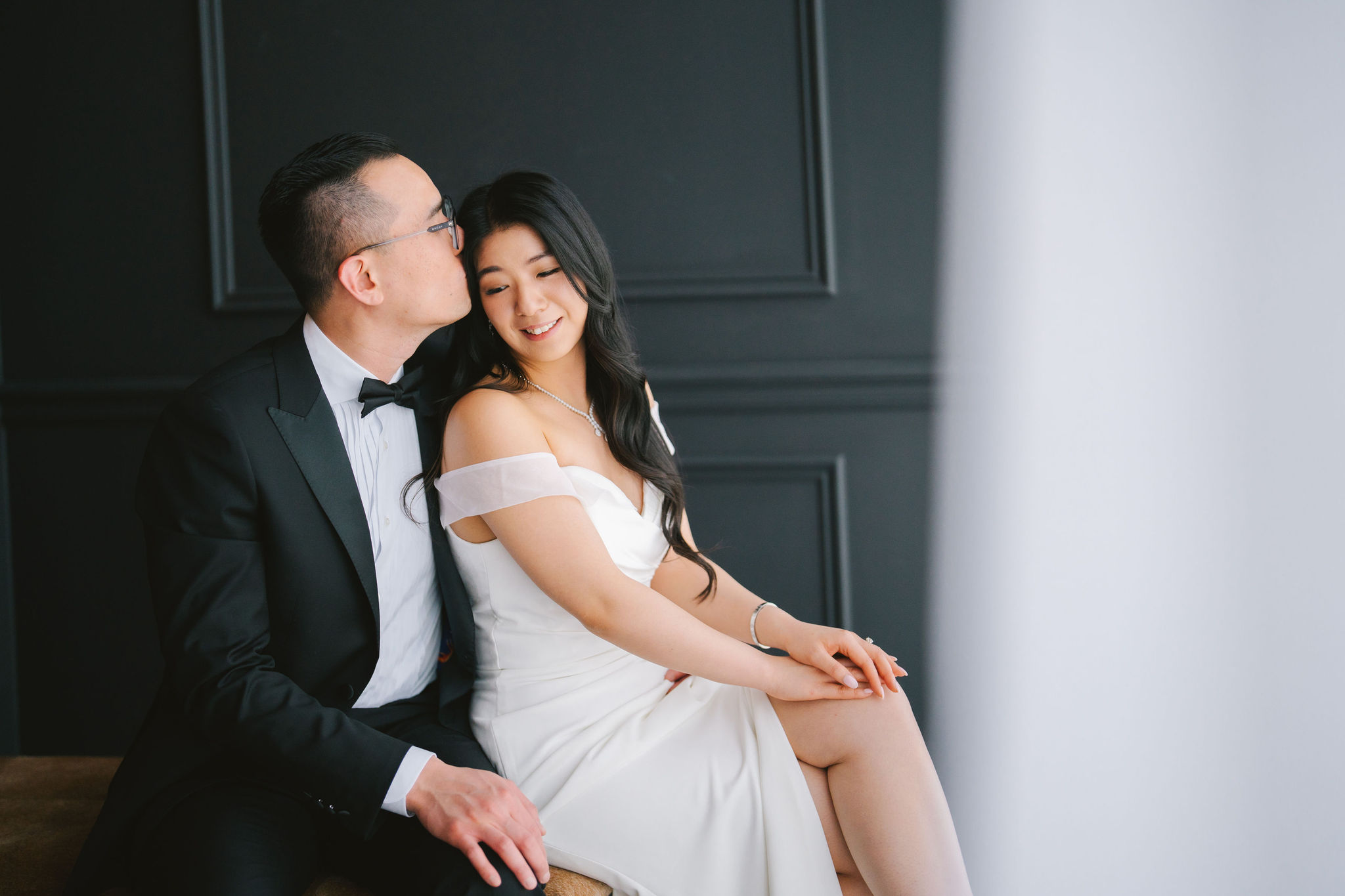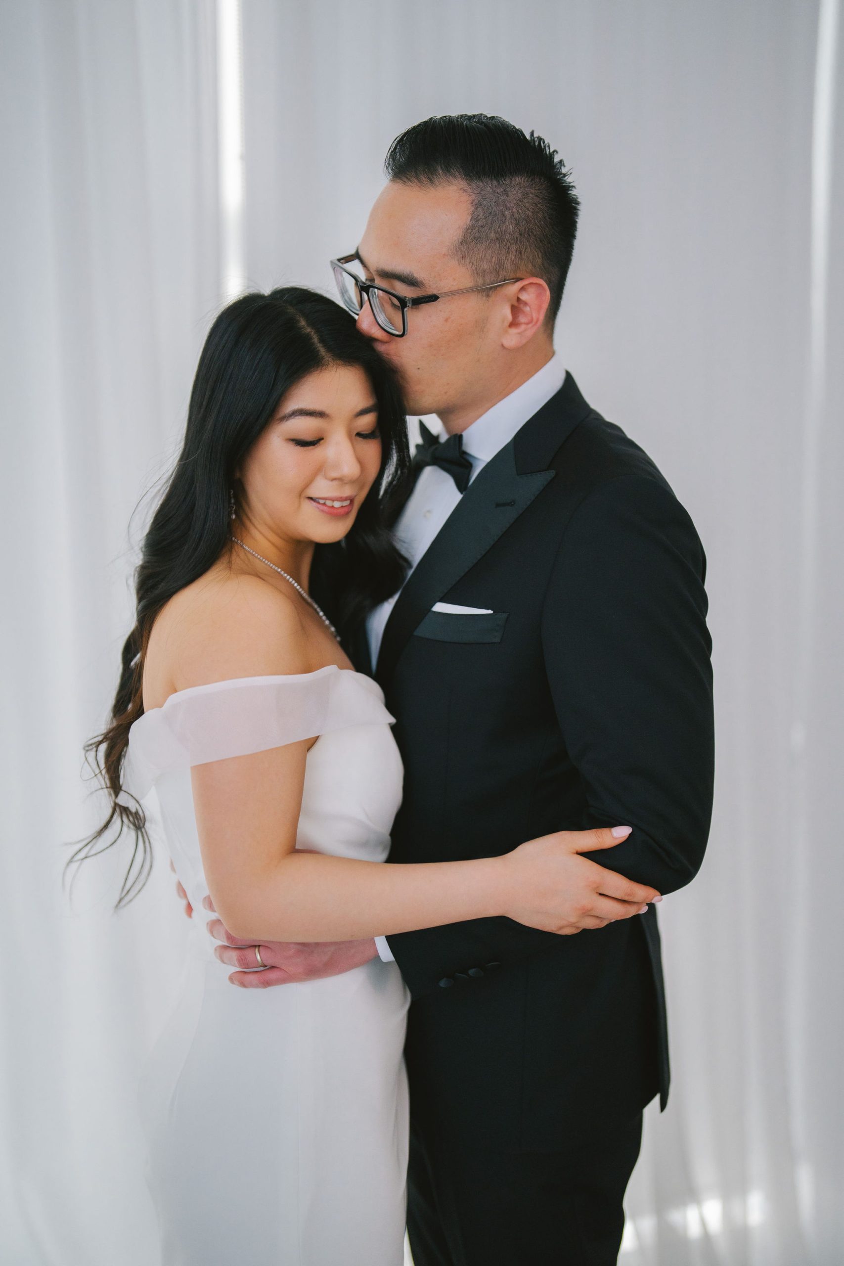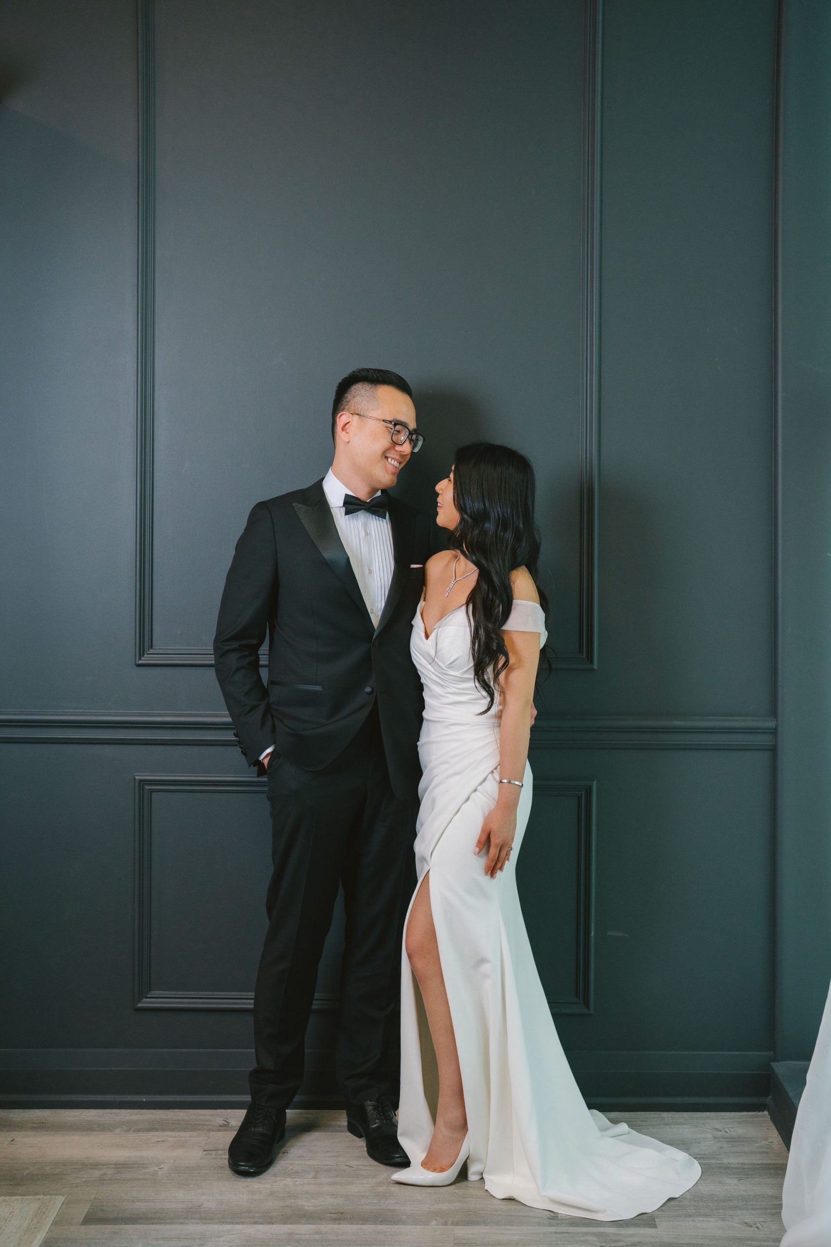 As for Wesley, he had on a black tuxedo with lapels that shone under the light, and a pair of black shoes that chameleon-ed very well with his dress pants. Because they were such a gorgeous couple, I wanted to be able to make their beauty and elegance stand out more in their pictures.