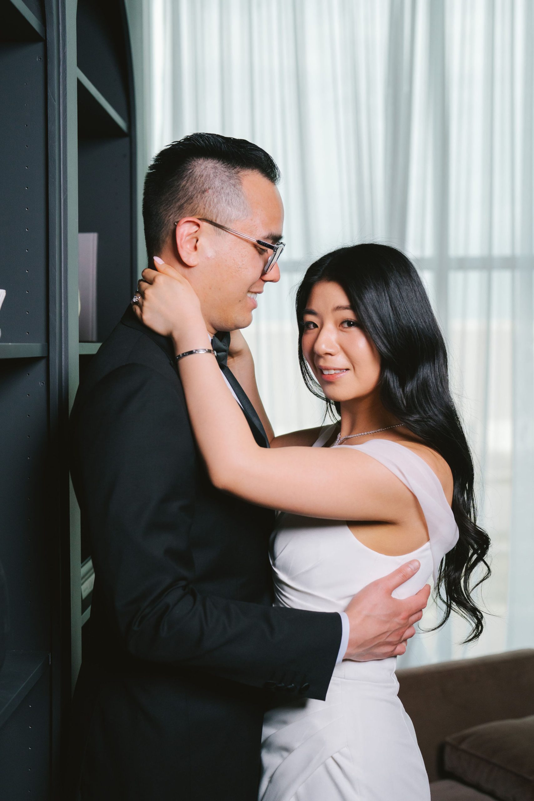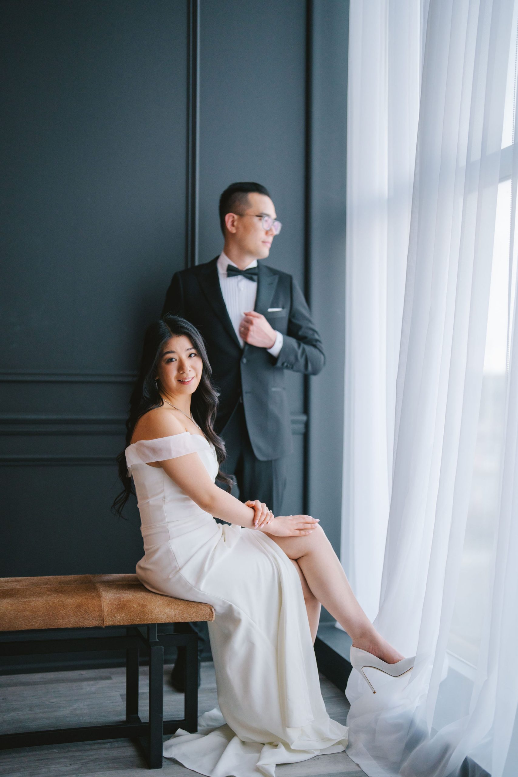 Wesley and Charmaine were dressed so gorgeously, they almost looked old fashioned! They booked the Glasshouse Studio for their engagement shoot. I headed over and immediately, images of how Wesley and Charmaine should pose by the drapes and the couch came to mind. I was more than ready with my camera and my visions in mind.