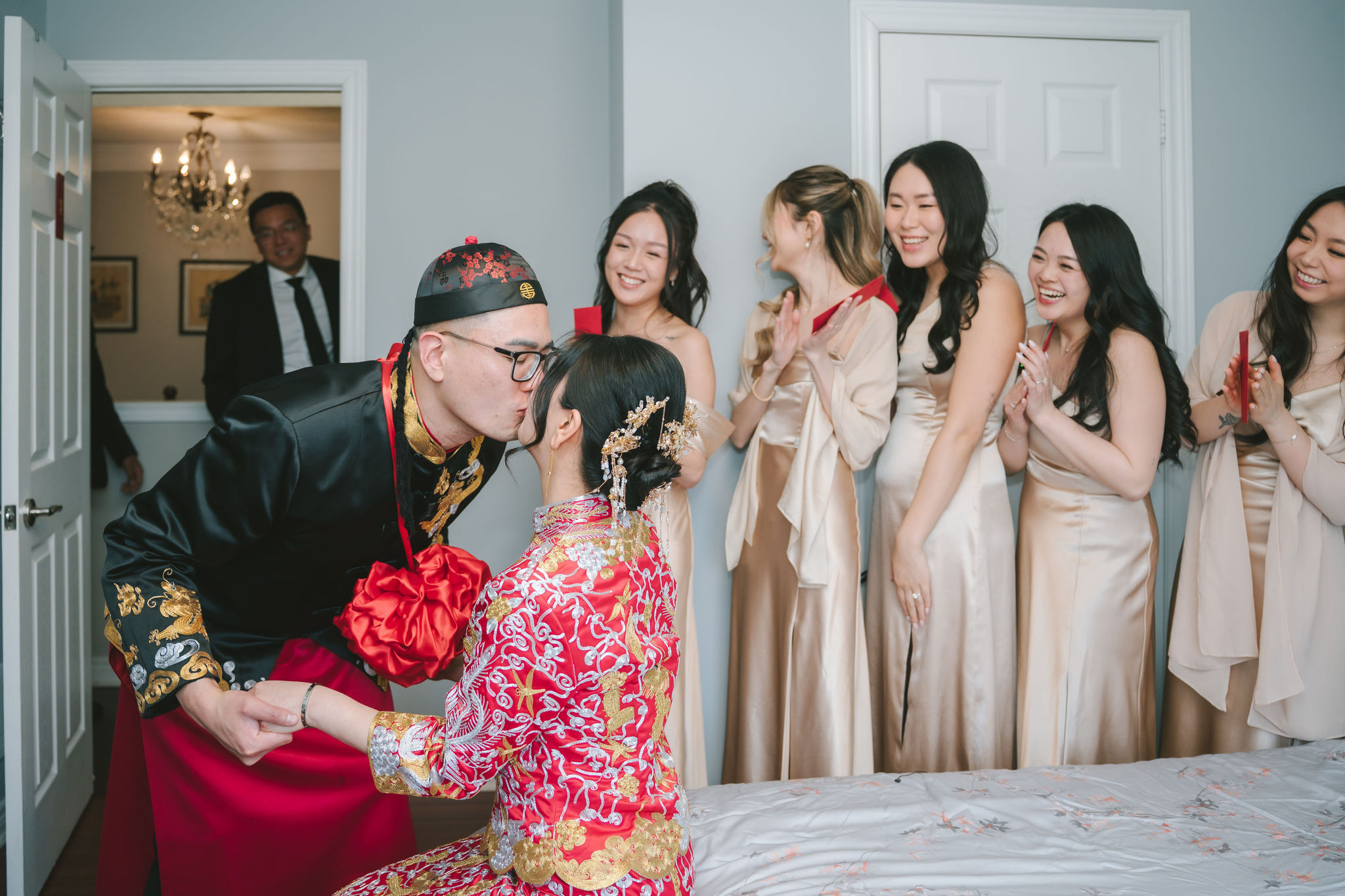 Wesley ran for his life to finally see his wife-to-be in the flesh. And upon gazing at her, he was smitten all over. Wesley grabbed a hold of her hands and kissed her so sweetly. Then, he and Charmaine went down the stairs to proceed with the tea ceremony.