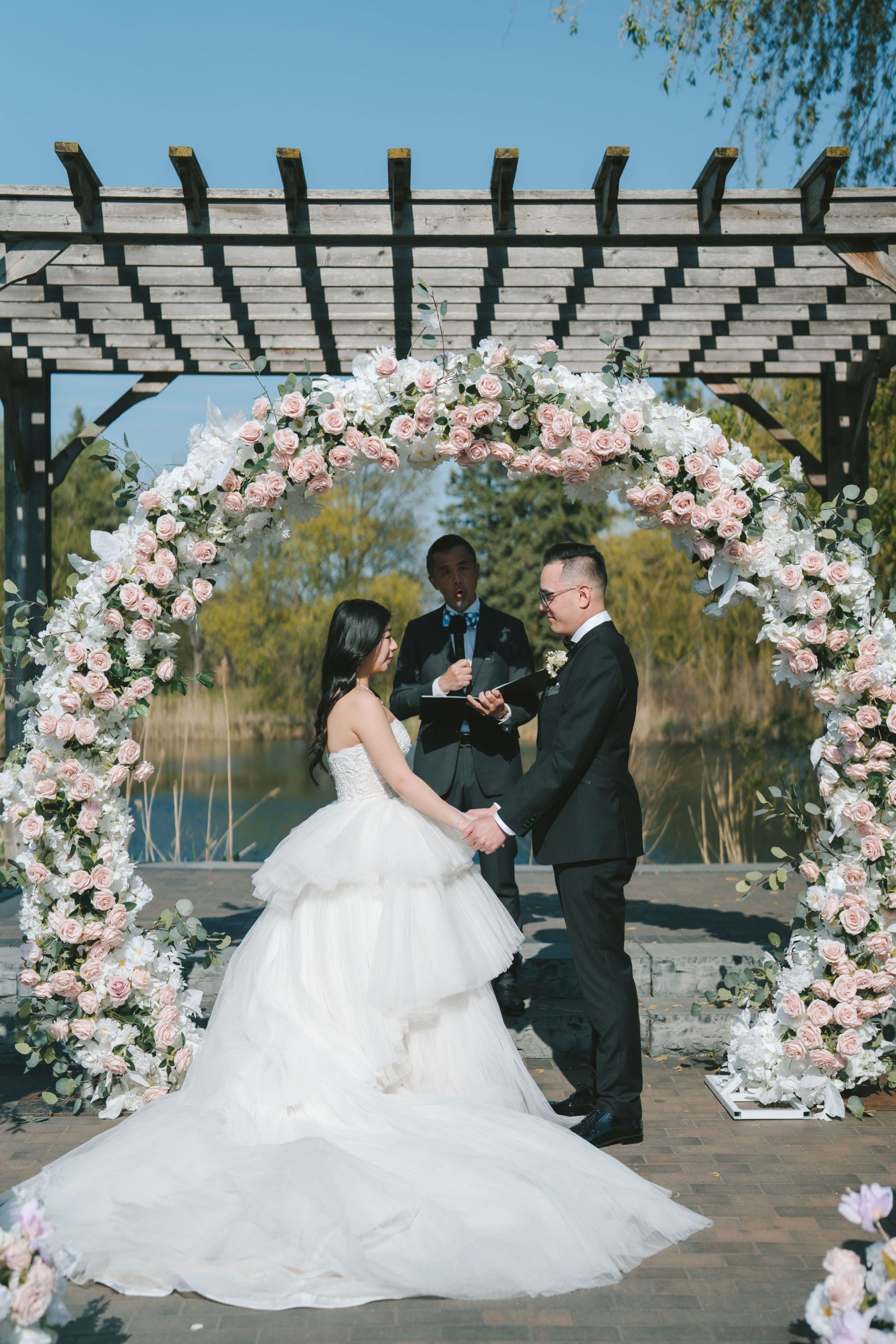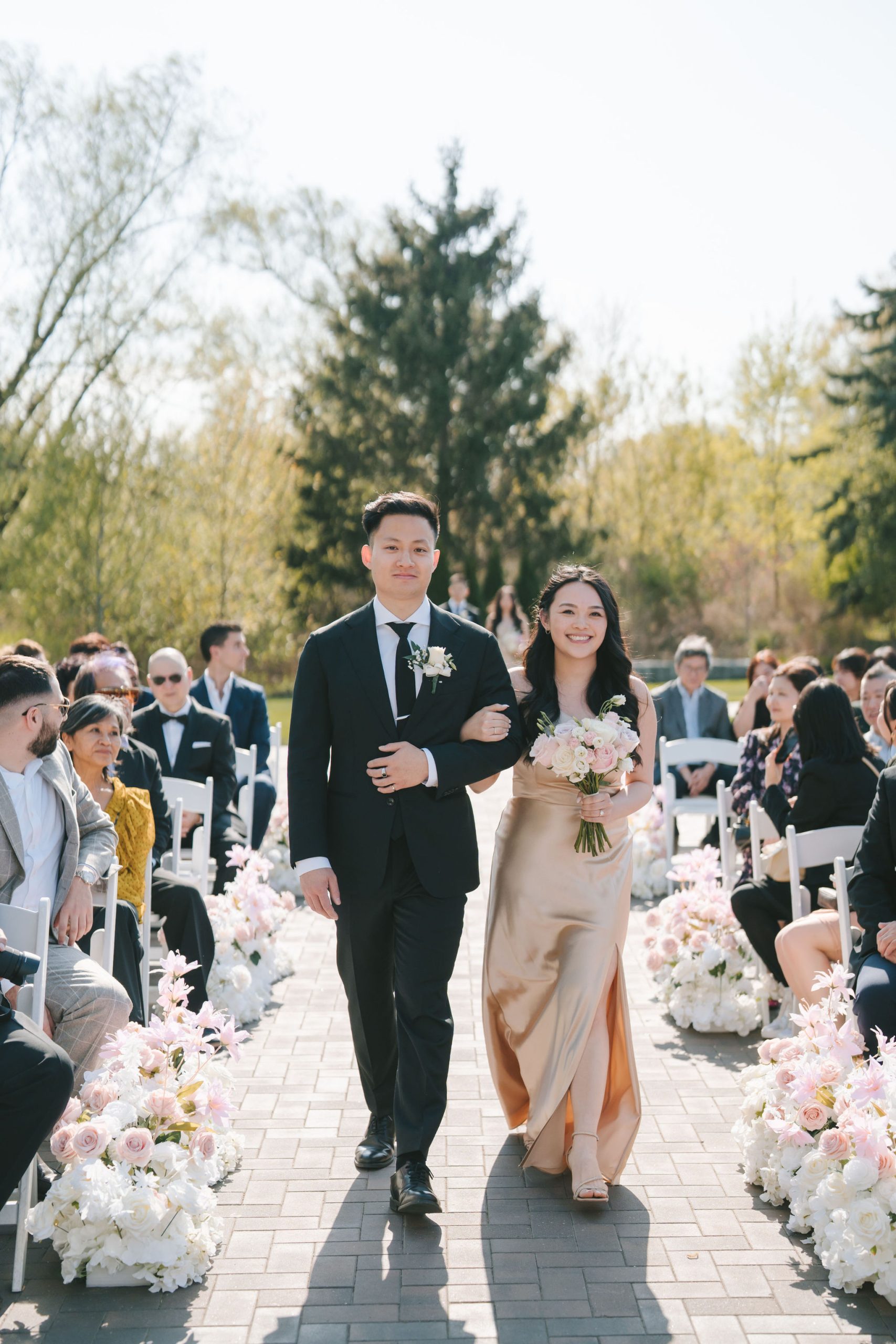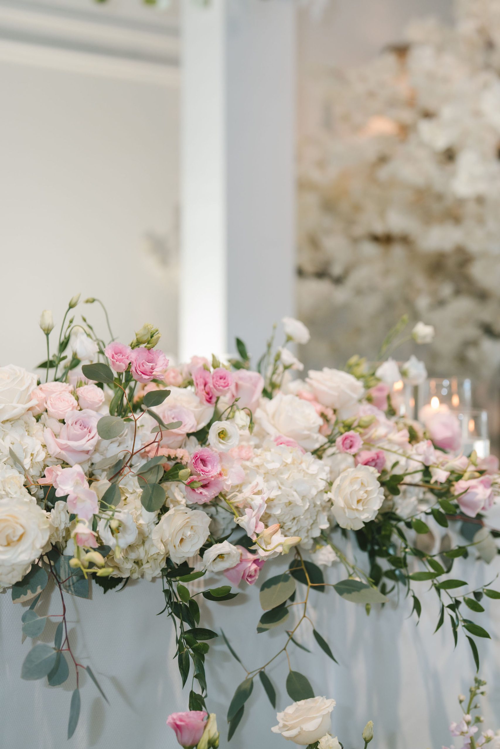 It looked like I had just walked into an Avant-Garde painting. The aisle was dressed up in beautiful floral arrangements. And don’t get me started on that archway! I was so in love with everything they did to the space.